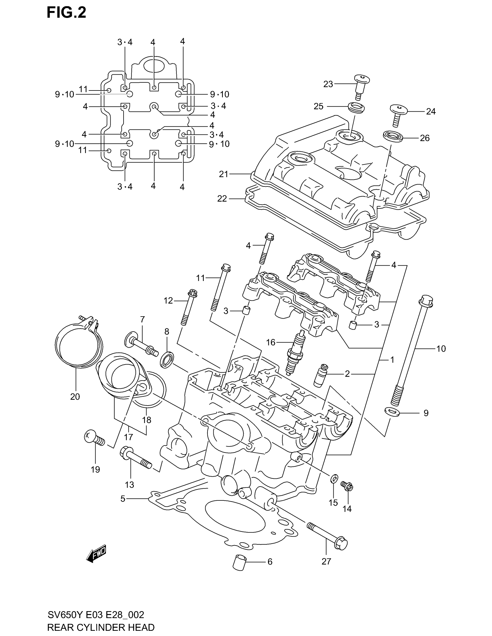 Suzuki SV650 (2002) REAR CYLINDER HEAD Diagram