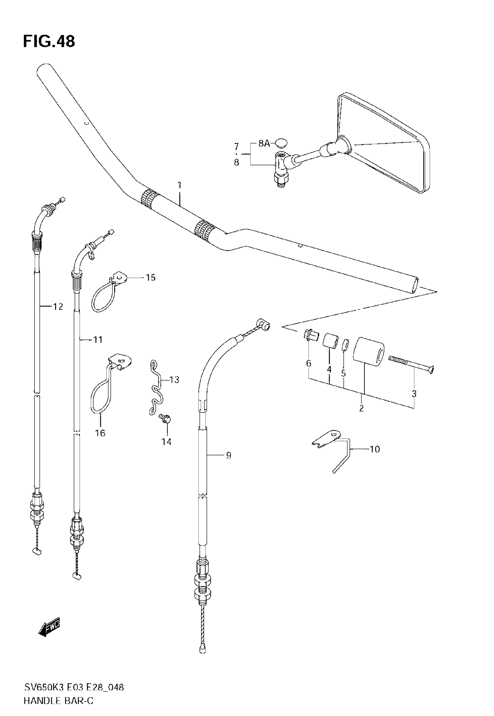 Suzuki SV650 (2007) HANDLEBAR (WITHOUT COWLING) Diagram