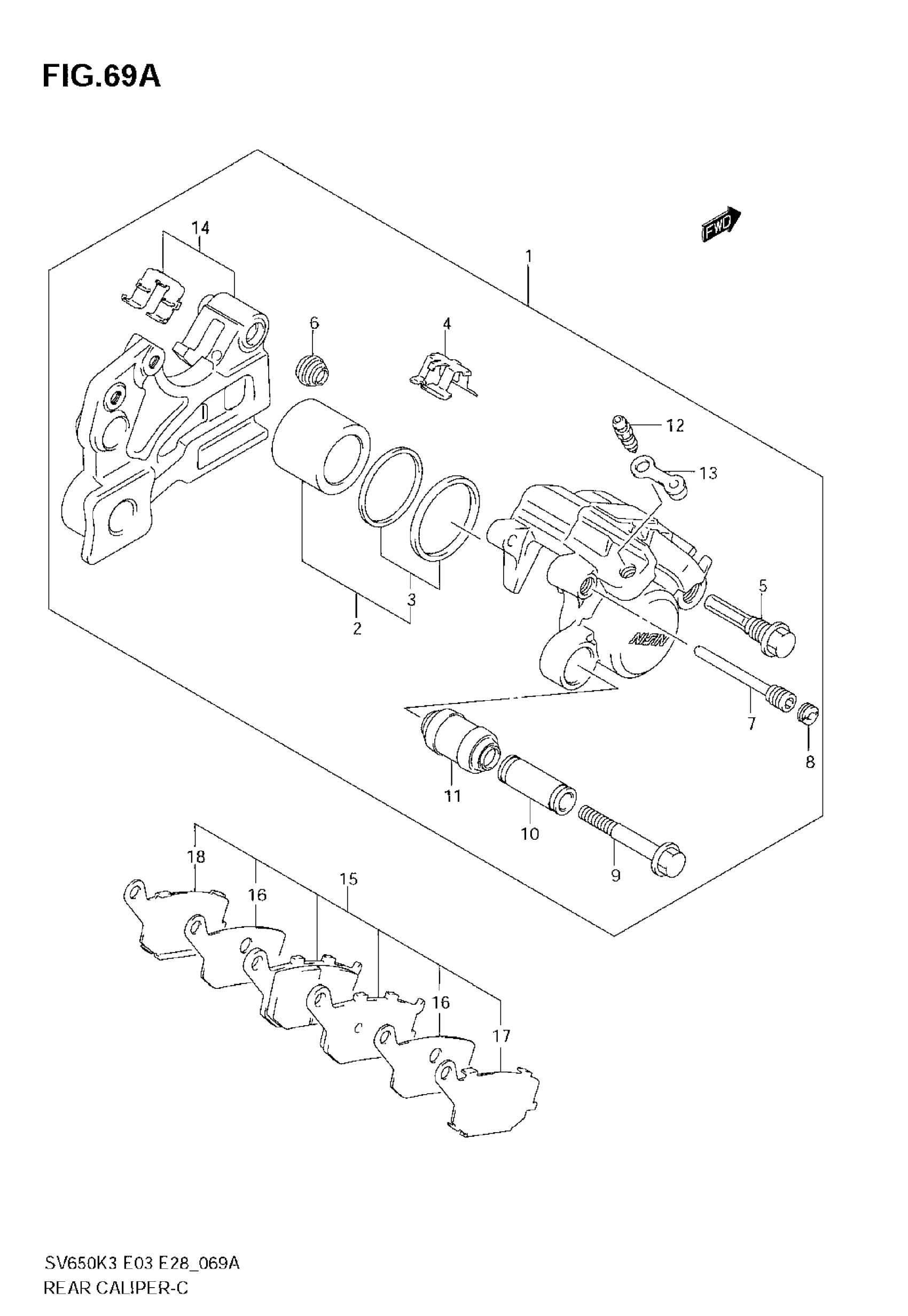 Suzuki SV650 (2007) REAR CALIPER (SV650AK7/SAK7) Diagram