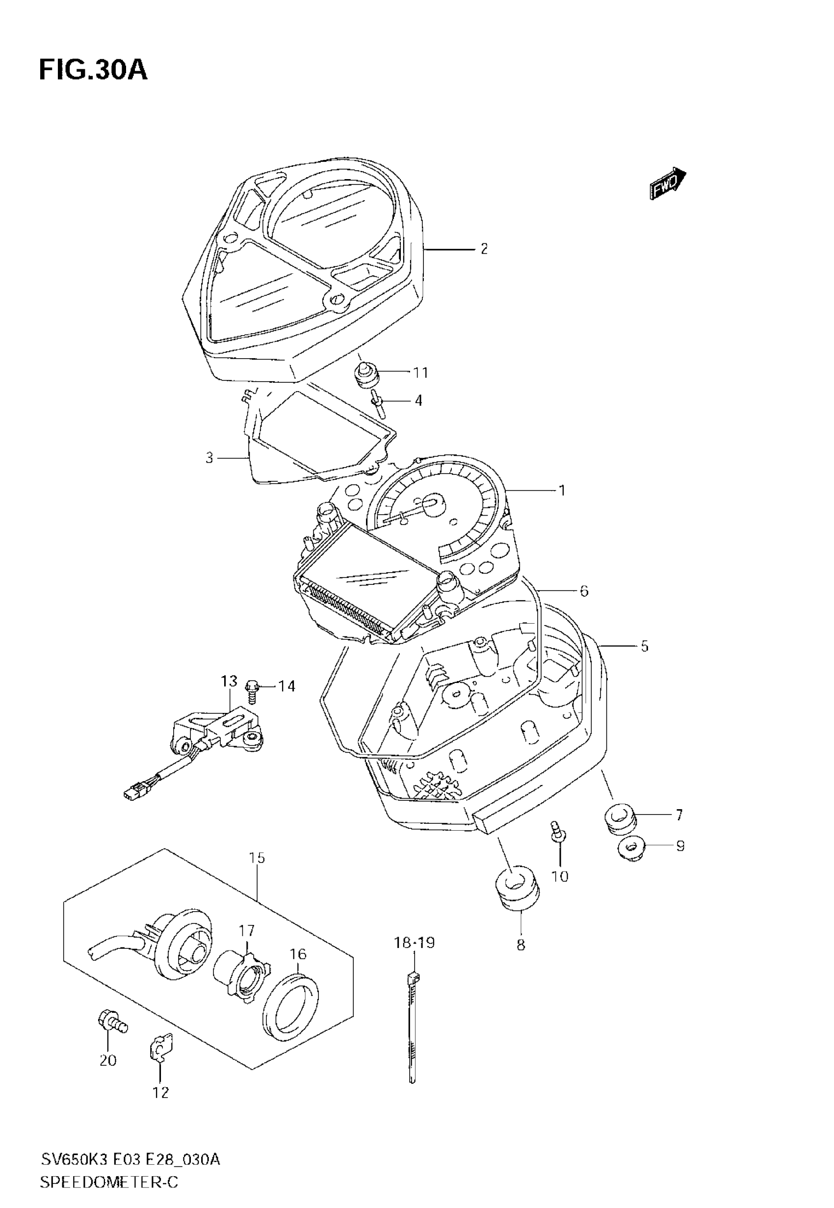 Suzuki SV650 (2007) SPEEDOMETER (SV650SK5/SK6/SK7) Diagram