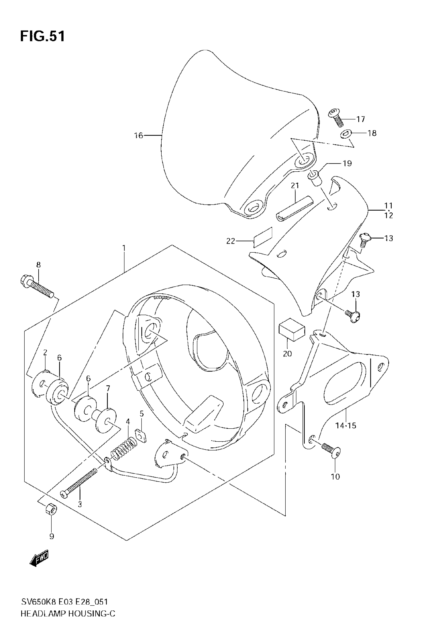 Suzuki SV650 (2008) HEADLAMP HOUSING (SV650/A) Diagram