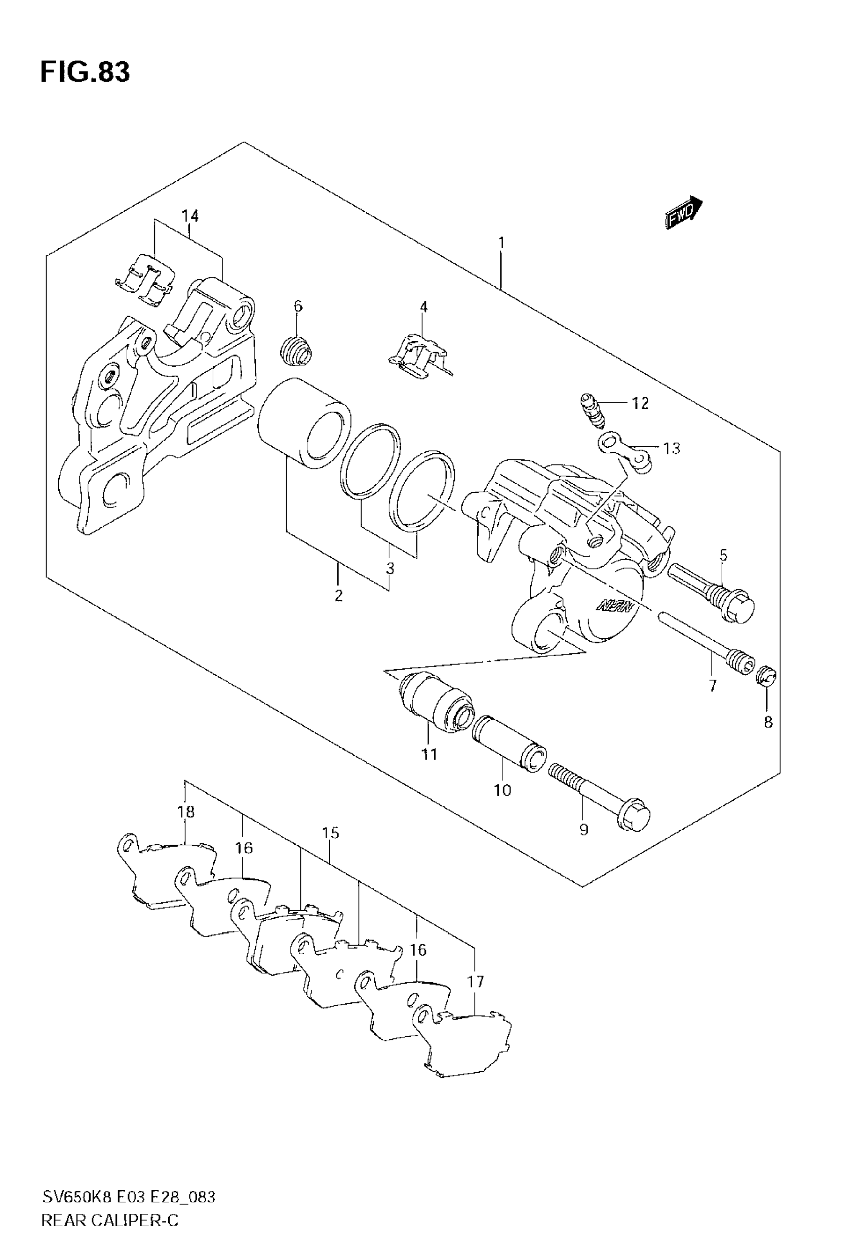 Suzuki SV650 (2008) REAR CALIPER (SV650AK8/SAK8) Diagram