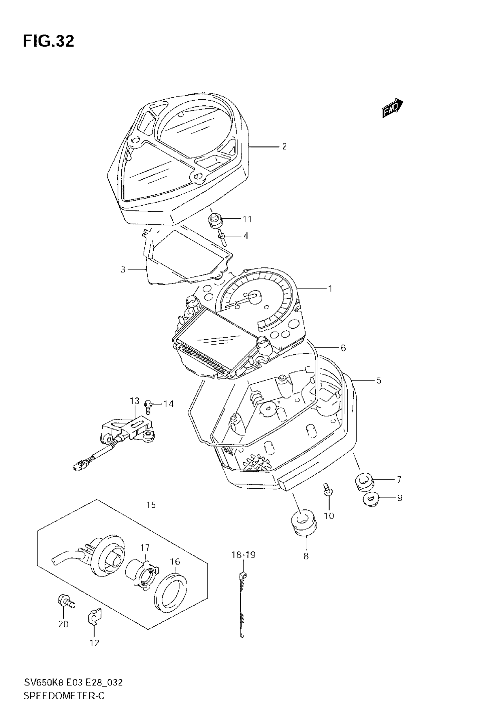 Suzuki SV650 (2008) SPEEDOMETER (SV650SK8) Diagram