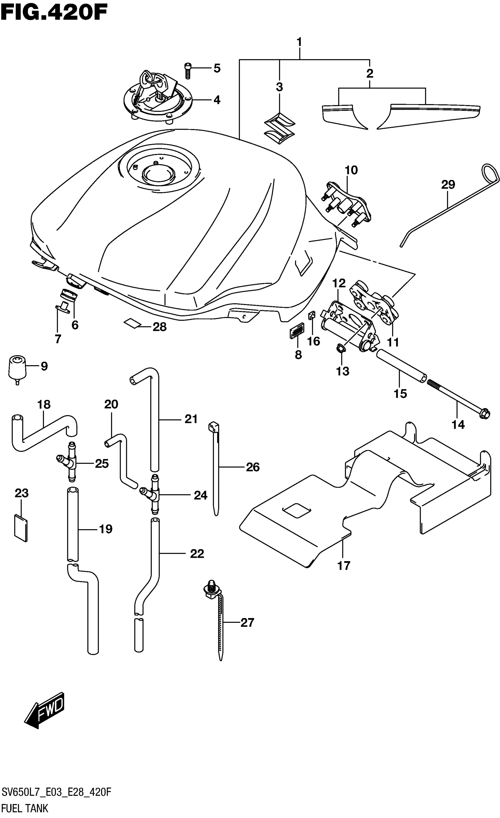 Suzuki SV650AL7 (2017) FUEL TANK (YSF,YVZ,YWW) (SV650AL7 E28) Diagram