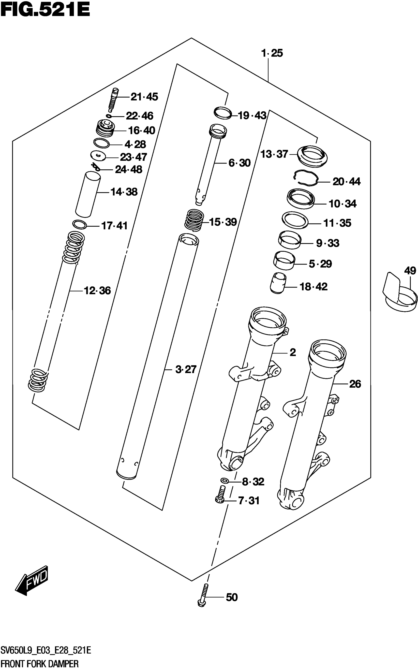 Suzuki SV650AL9 (2019) FRONT FORK DAMPER (SV650XAL9 E28) Diagram