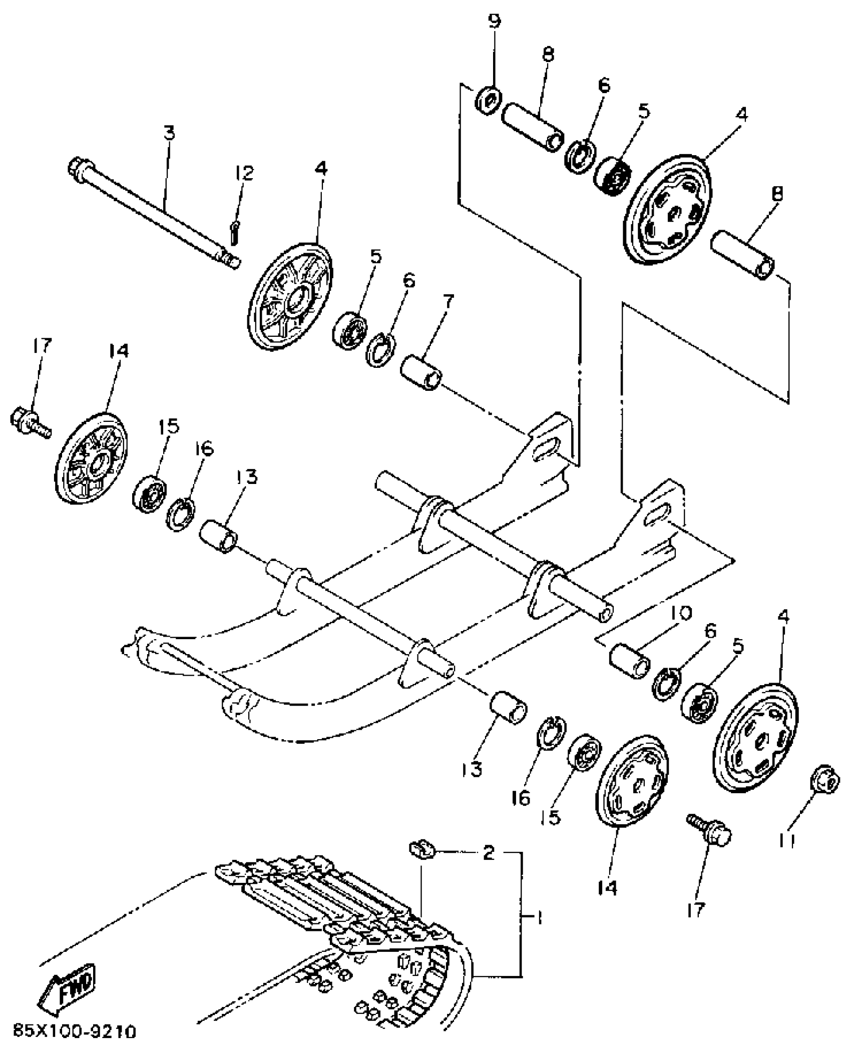 Yamaha SV80EN (SNOSCOOT (ELEC START)) 1989 TRACK SUSPENSION 1 Diagram