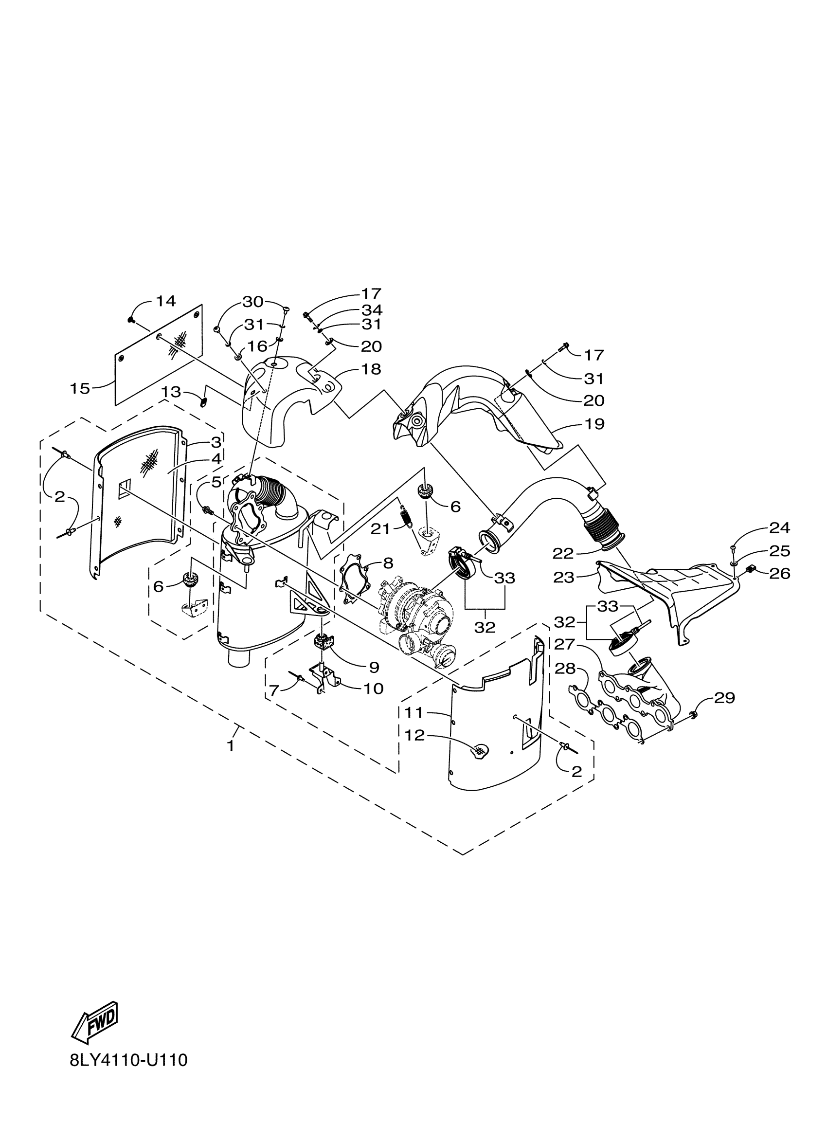 Yamaha SW1NBLLL (SIDEWINDER B TX LE 153) 8MF8 2020 EXHAUST Diagram