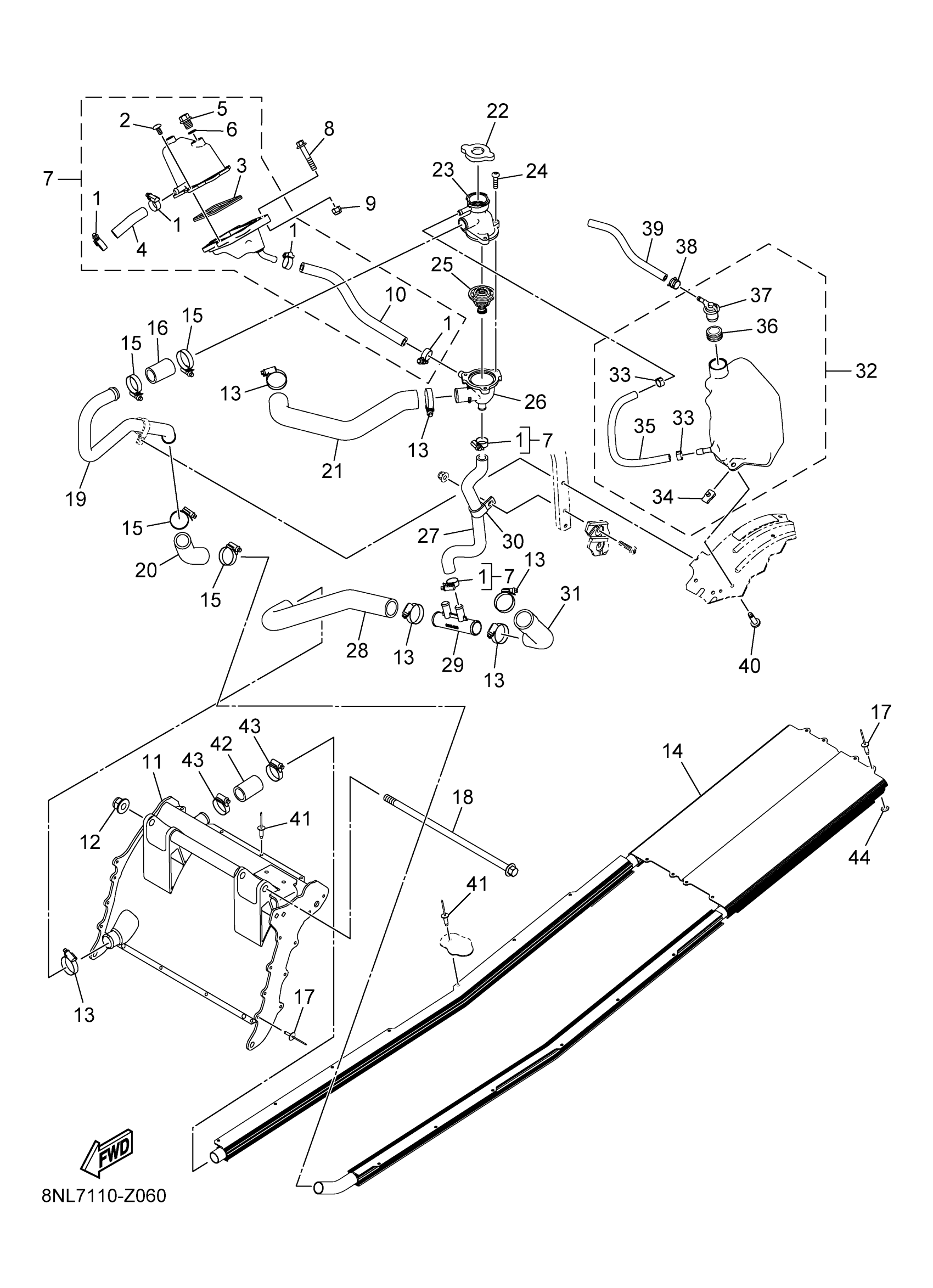 Yamaha SW1NLSSB (SIDEWINDER LTX SE) 8MA9 2025 RADIATOR & HOSE Diagram