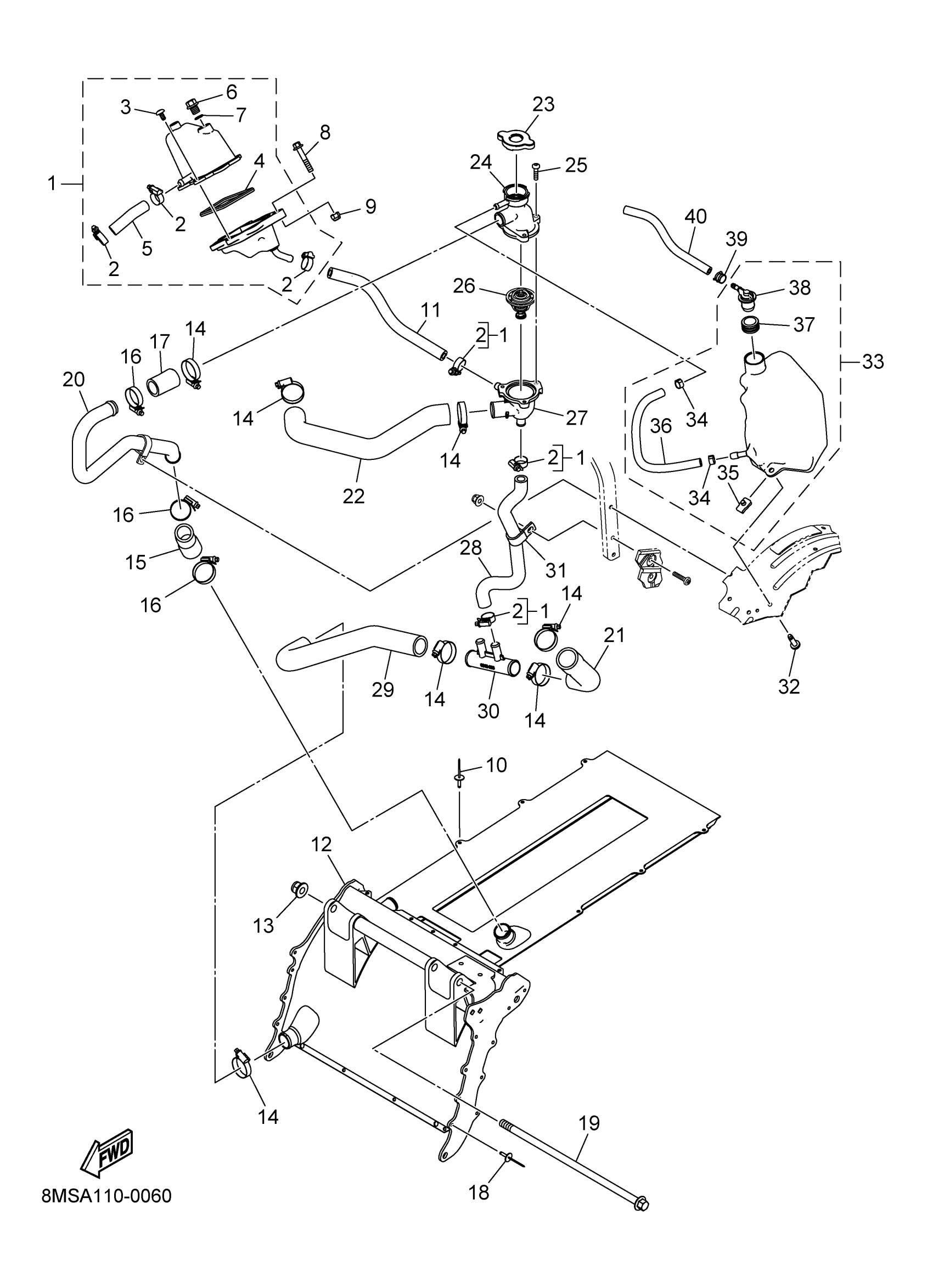 Yamaha SW1NMLSB (SIDEWINDER MTX LE 153) 8MSA 2025 RADIATOR & HOSE Diagram