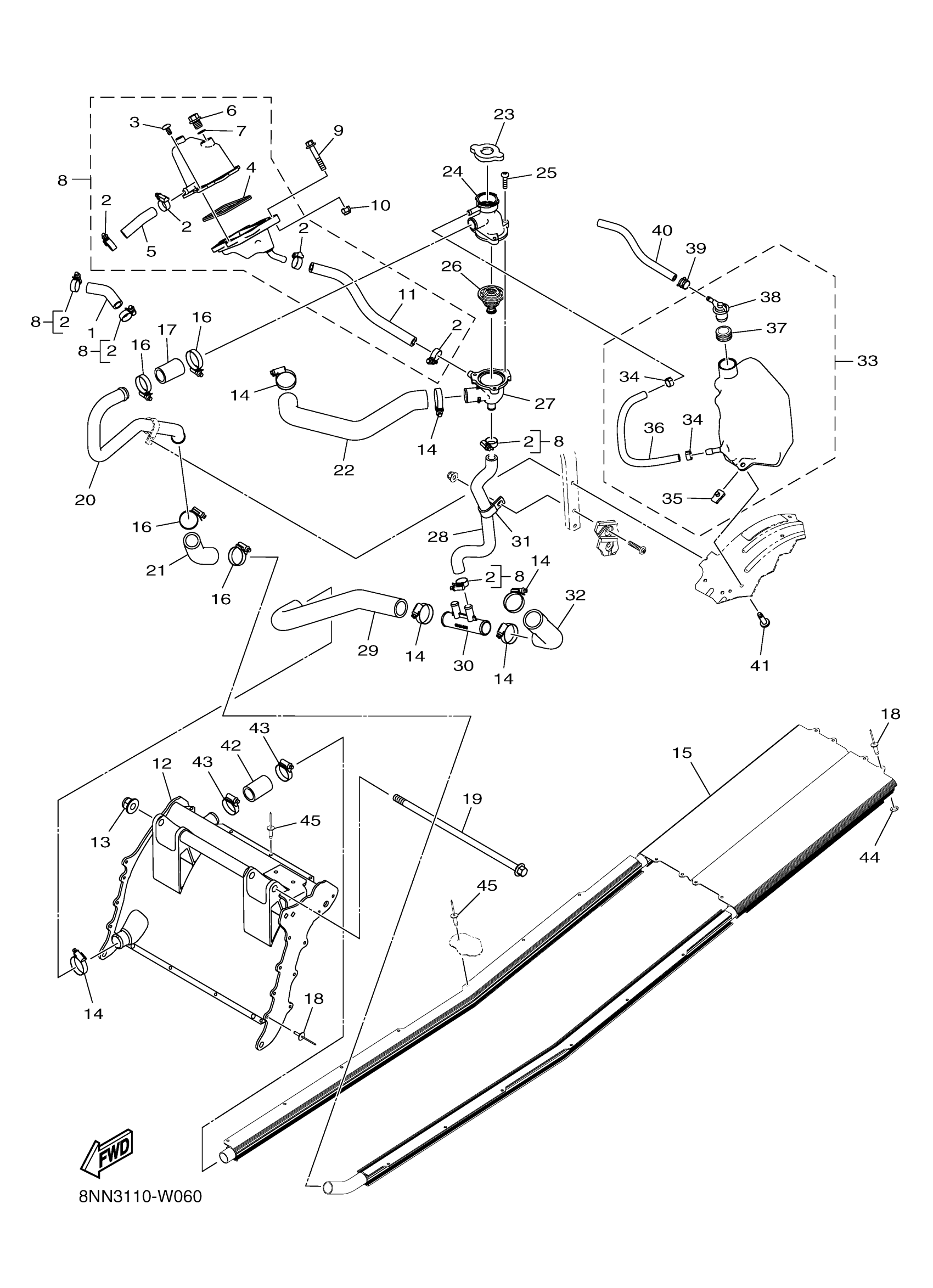 Yamaha SW1NXLMO (SIDEWINDER X TX LE) 8NN3 2021 RADIATOR & HOSE Diagram