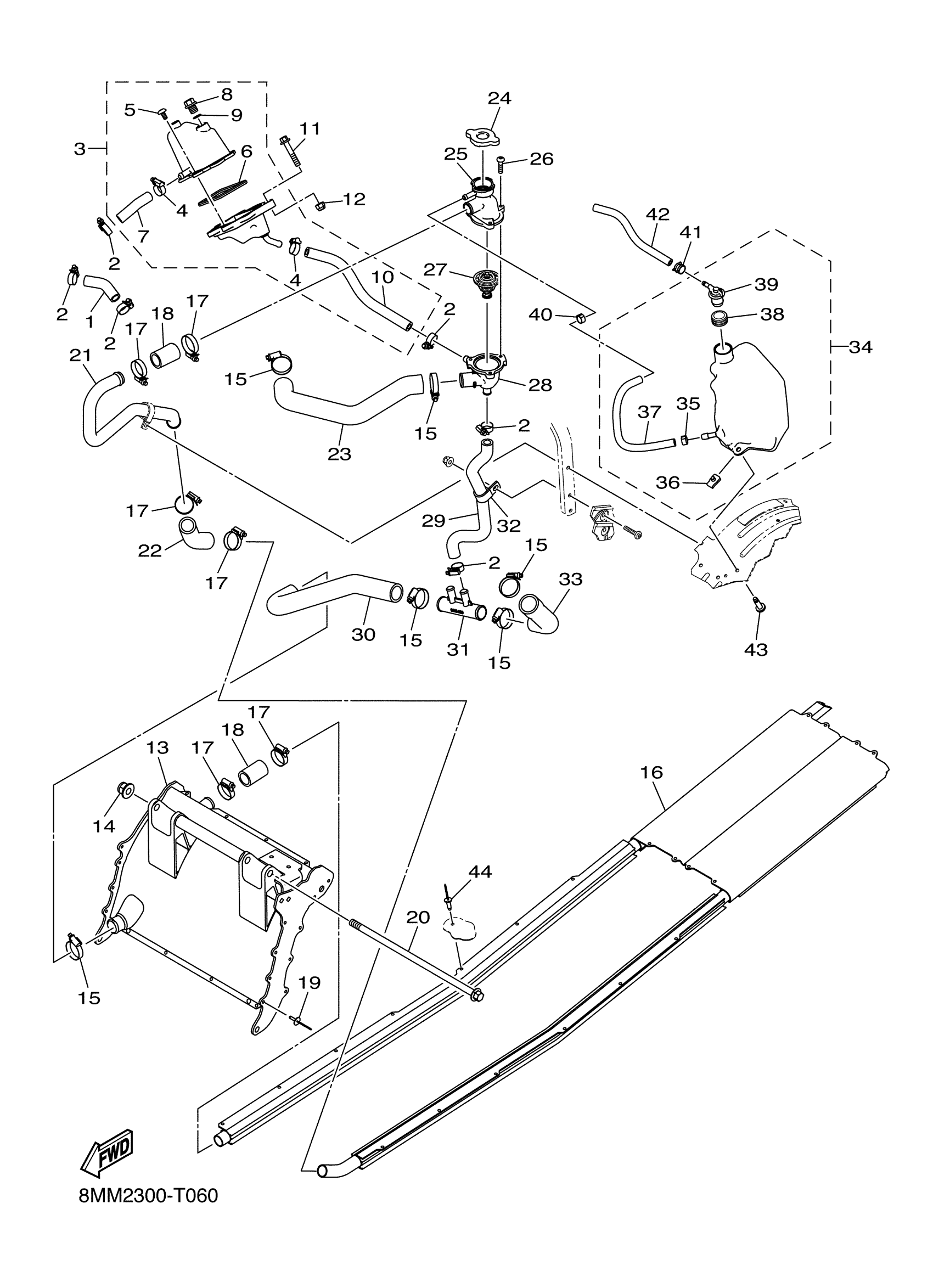 Yamaha SW1NXS37JY (SIDEWINDER X TX SE 137) 8MM1 2018 RADIATOR HOSE Diagram
