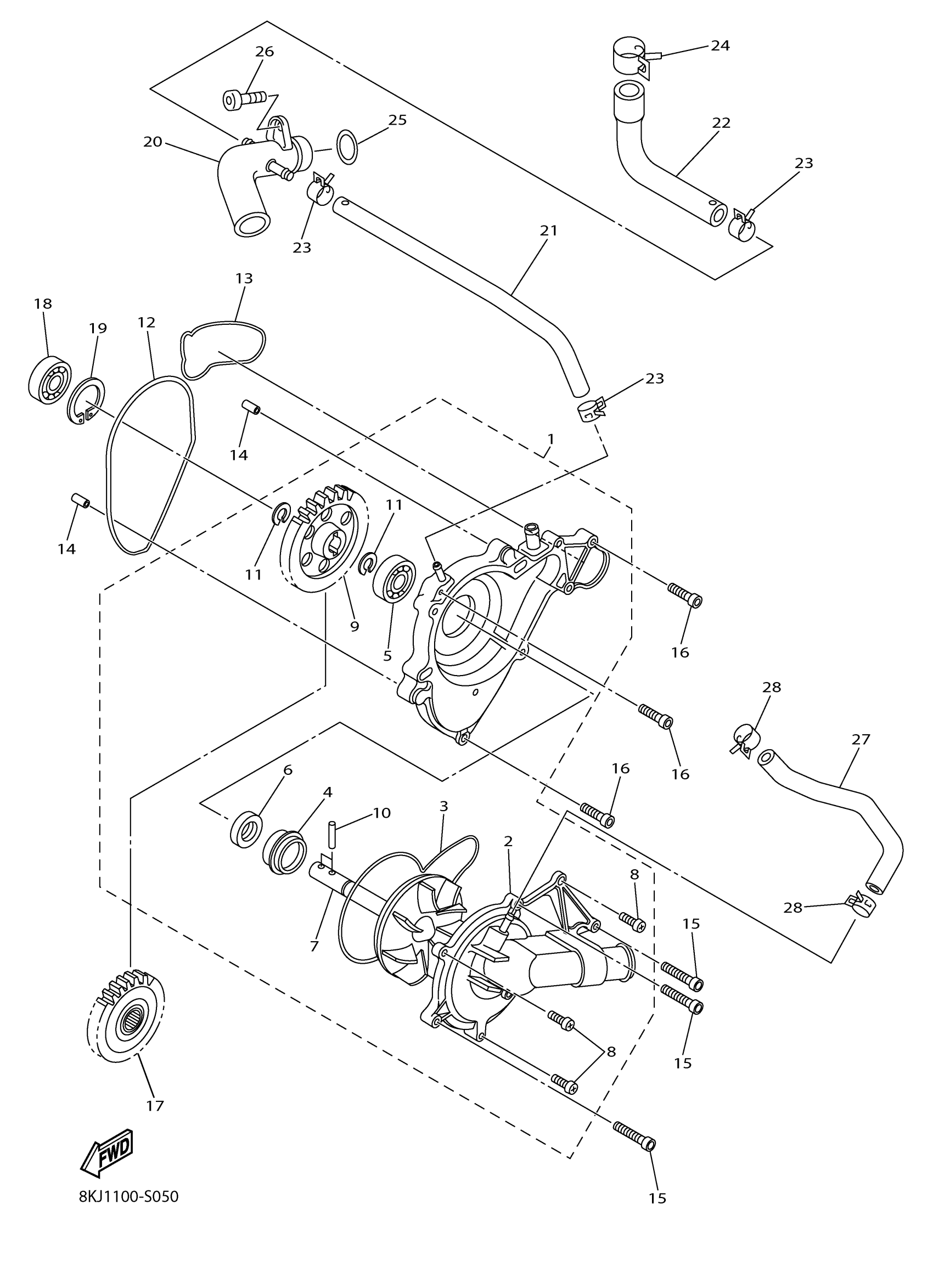 Yamaha SW1NXS60KW (SIDEWINDER X TX SE 141) 8ME6 2019 WATER PUMP Diagram