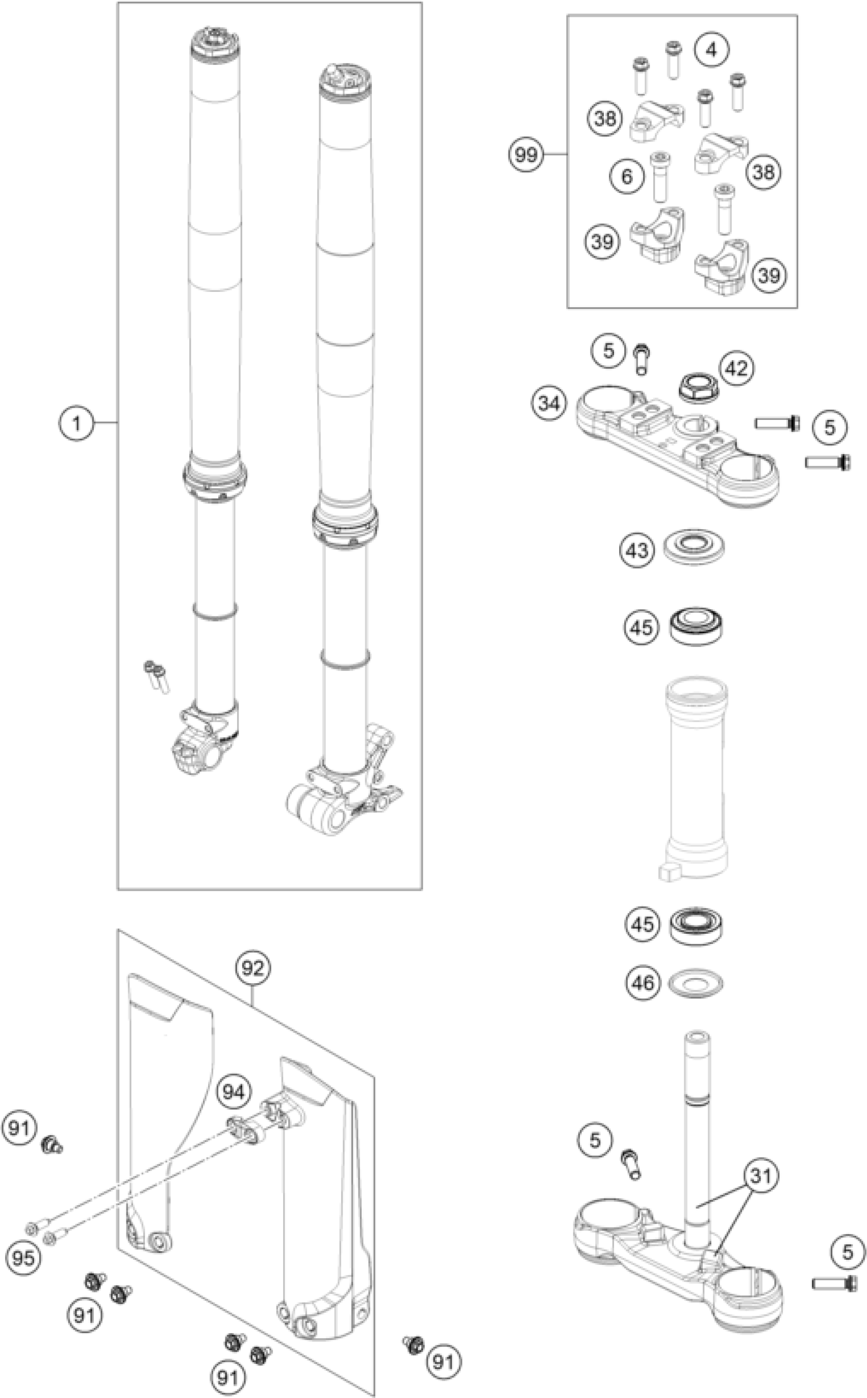 FRONT FORK, TRIPLE CLAMP