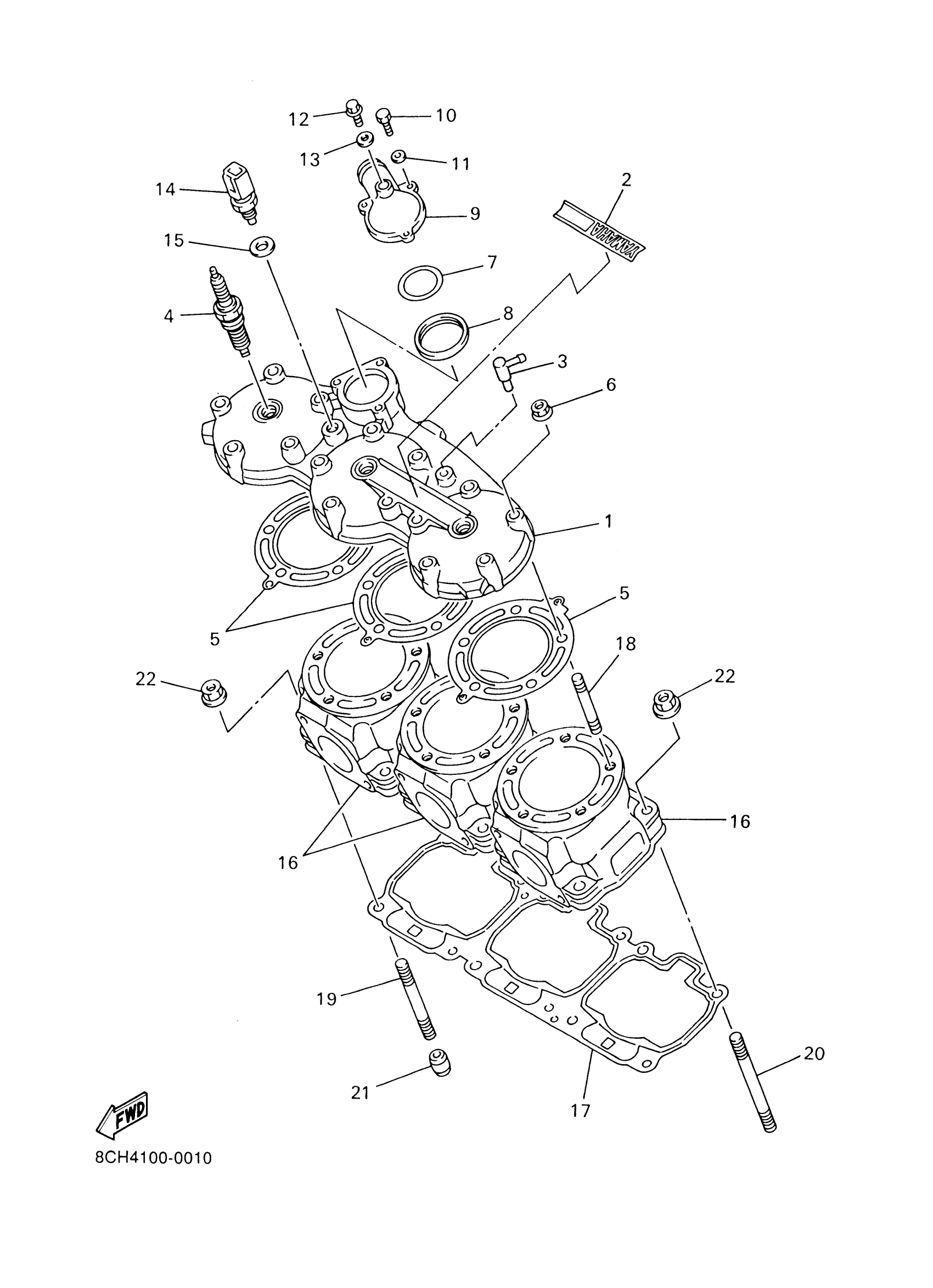 Yamaha SX700F (SX700R) 8CH5 2001 CYLINDER HEAD Diagram