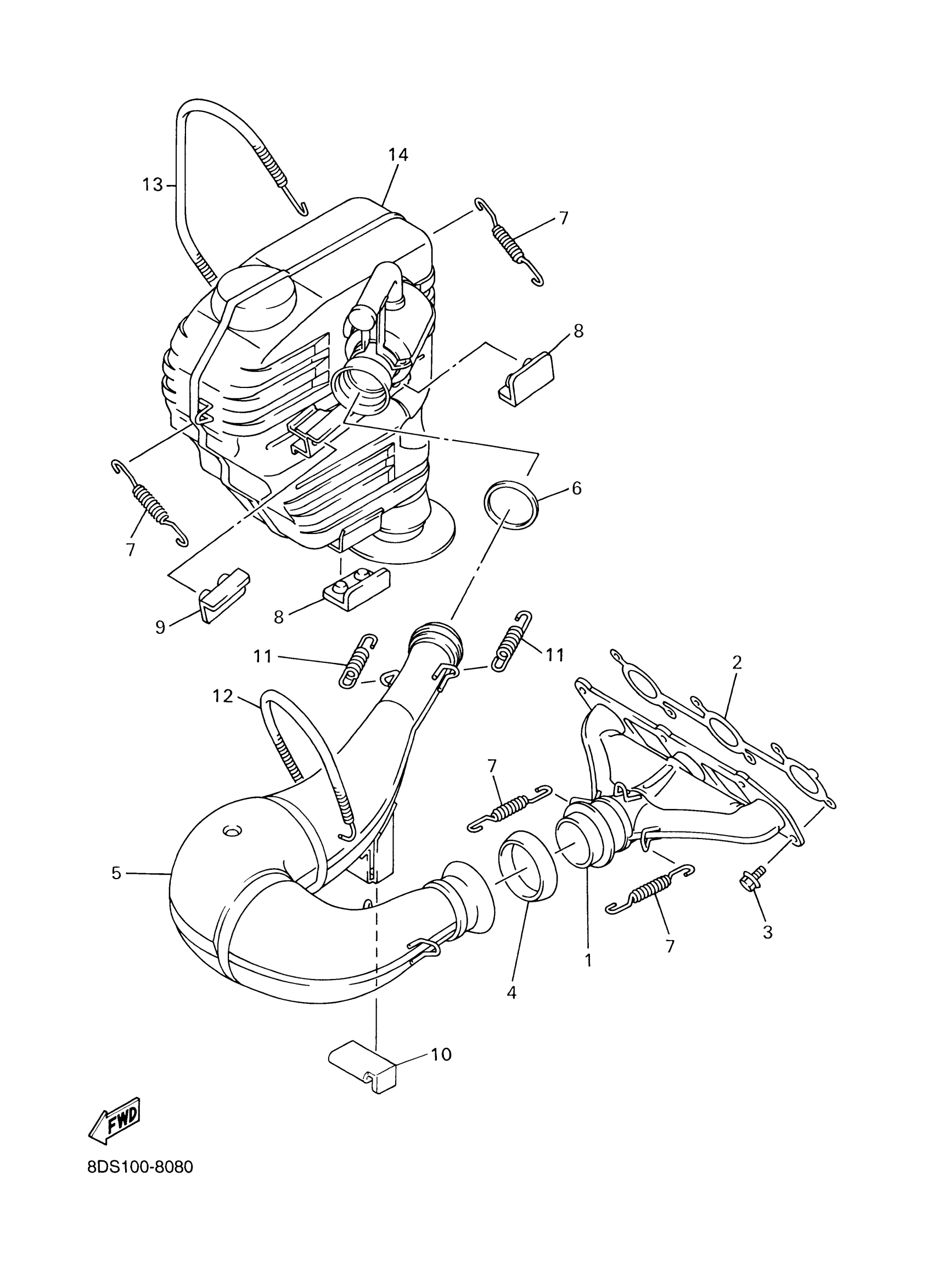 Yamaha SX700F (SX700R) 8CH5 2001 EXHAUST Diagram