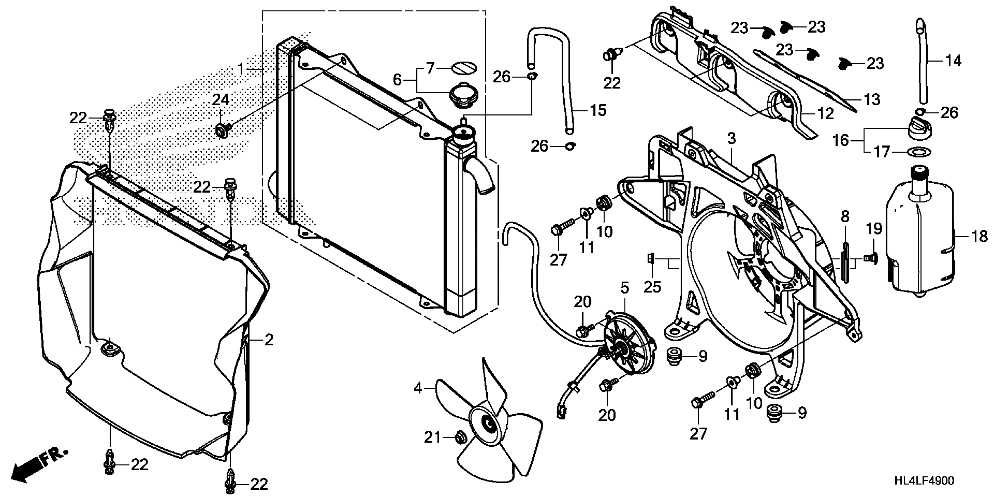 Honda SXS1000M3D2A (20) ALL-TERRAIN VEHICLE (ATV), USA, VIN# 1HFVE045-L4400001 RADIATOR Diagram