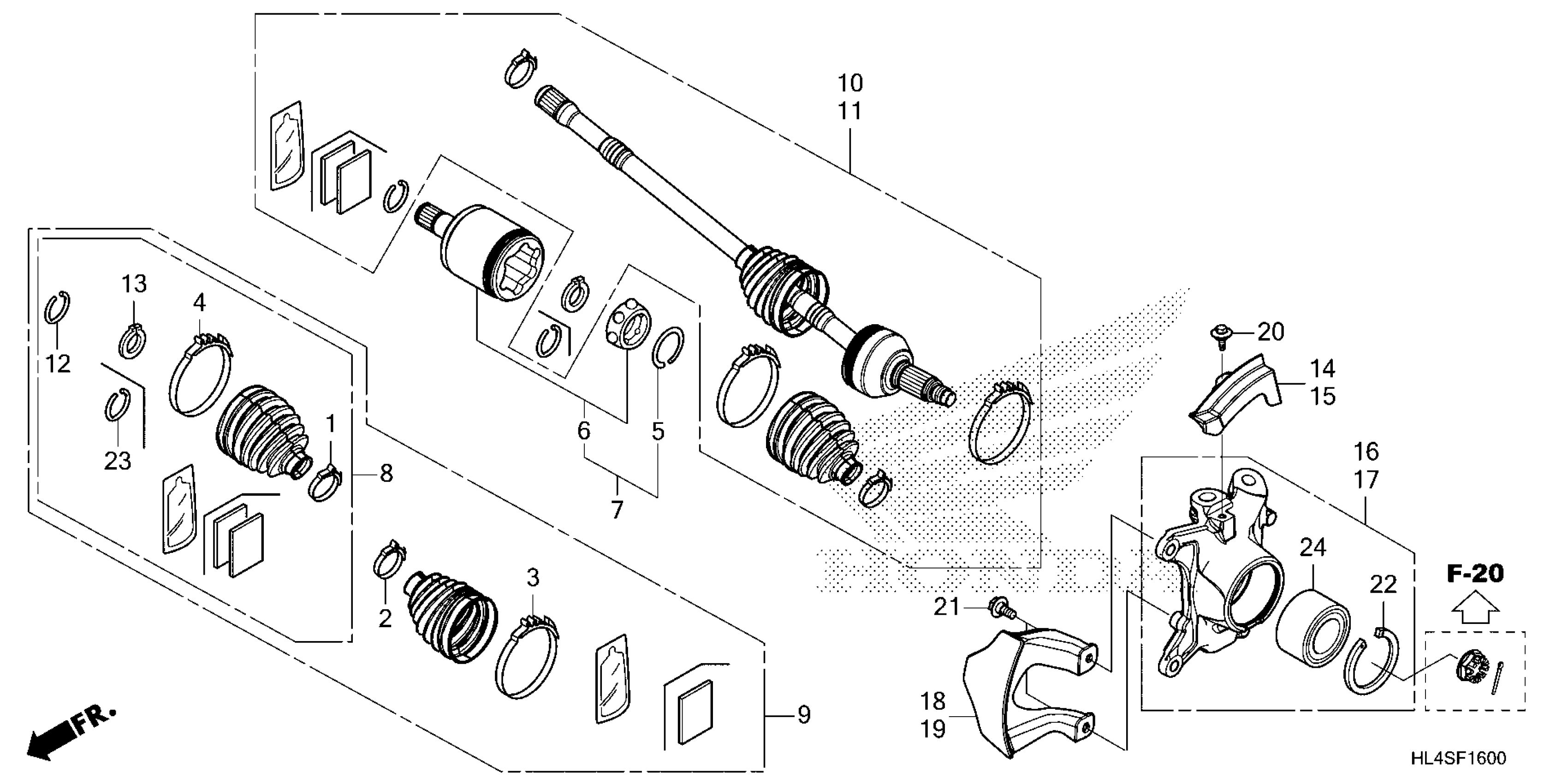 Honda SXS1000M3DA (25) ALL-TERRAIN VEHICLE (ATV), USA, VIN# 1HFVE04B-S4900001 TO 1HFVE04B-S4999999 FRONT KNUCKLE@DRIVESHAFT Diagram