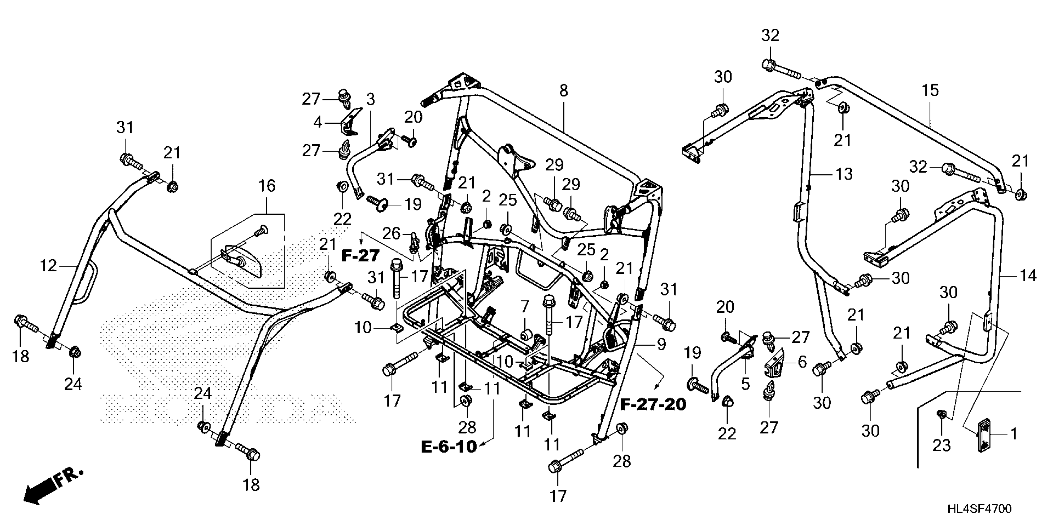Honda SXS1000M3DA (25) ALL-TERRAIN VEHICLE (ATV), USA, VIN# 1HFVE04B-S4900001 TO 1HFVE04B-S4999999 ROLL BAR@BACK MIRROR Diagram