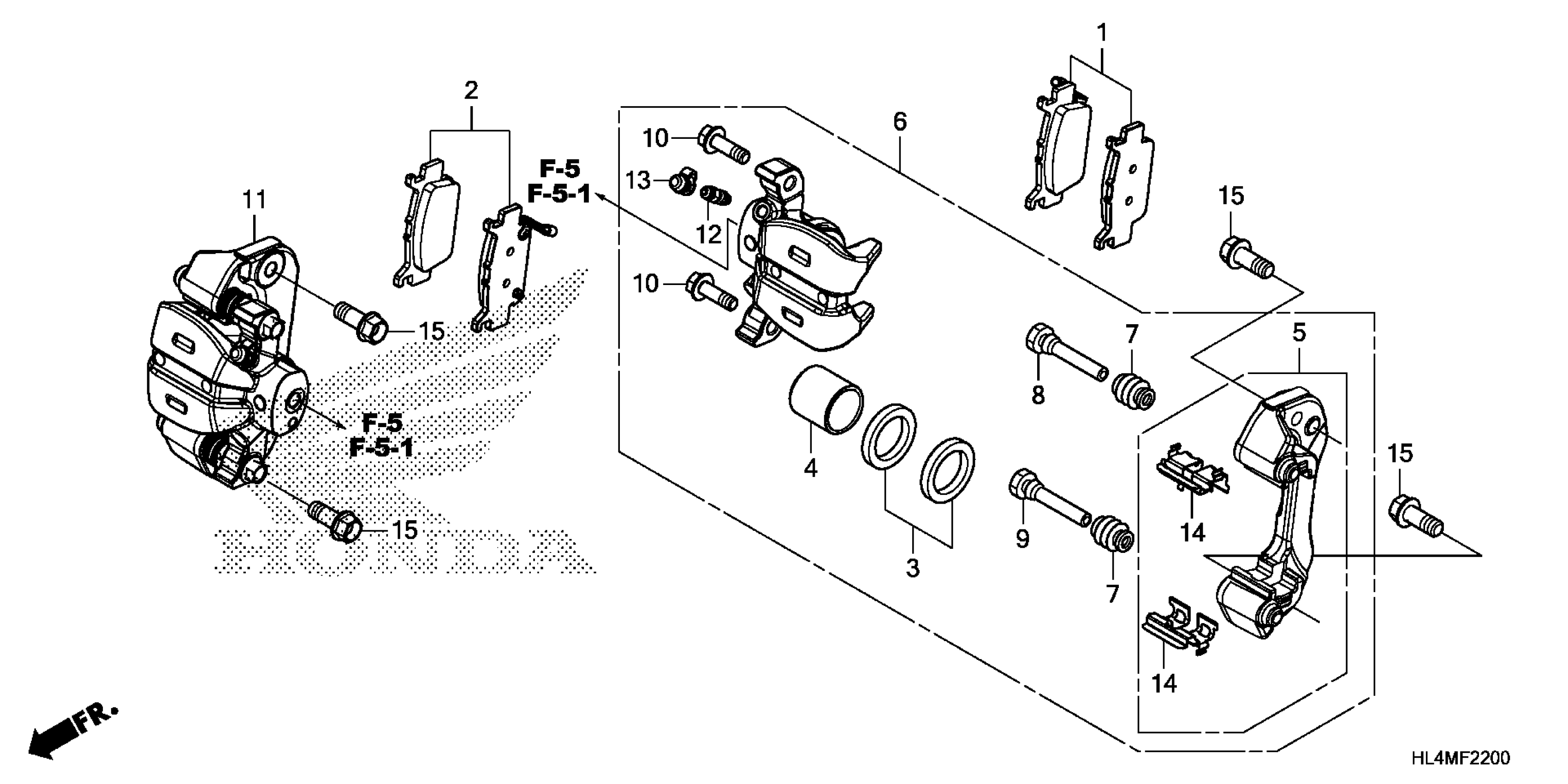 Honda SXS1000M3LA (21) ALL-TERRAIN VEHICLE (ATV), USA, VIN# 1HFVE04X-M4500001 REAR BRAKE CALIPER Diagram
