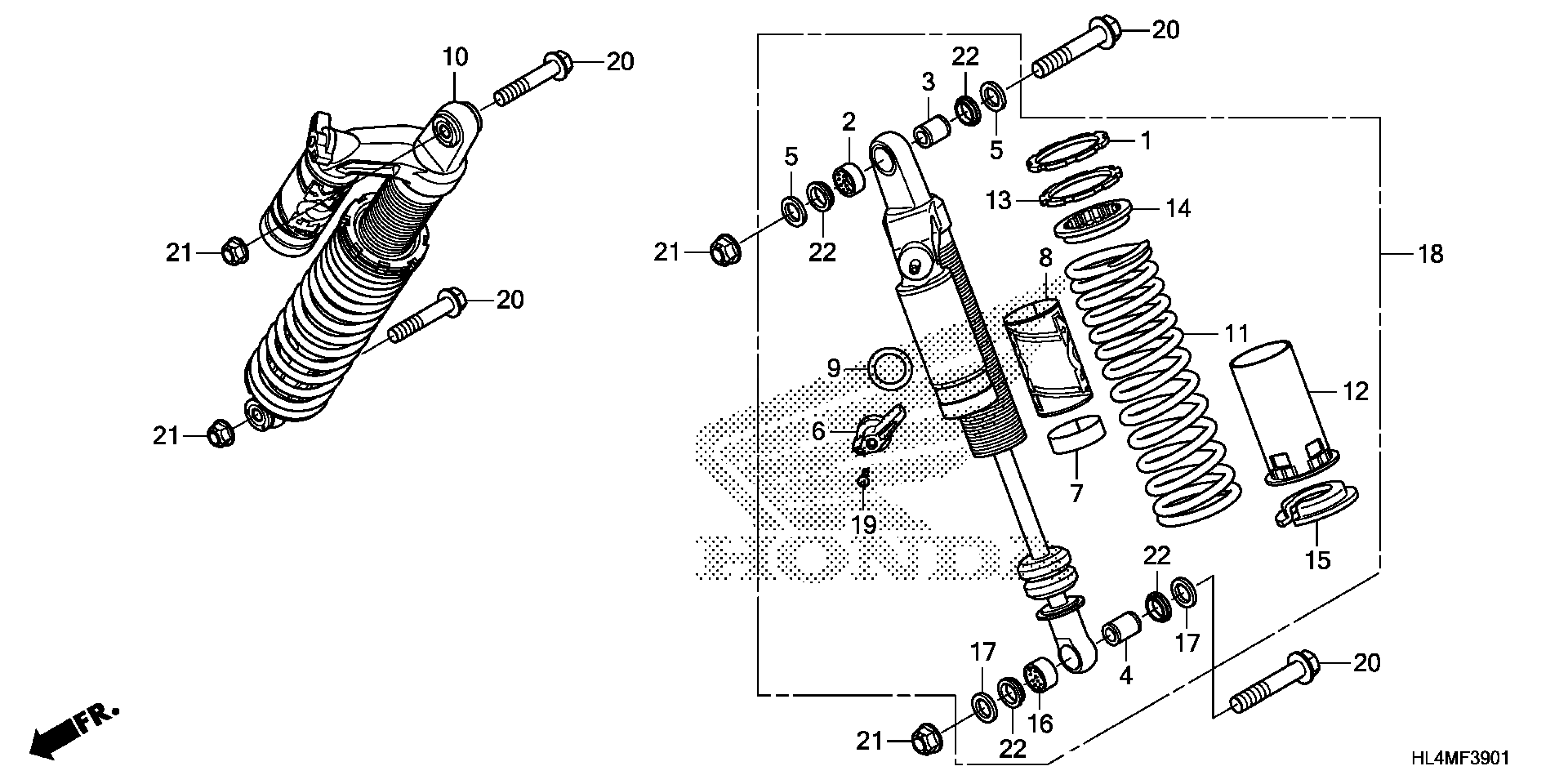 Honda SXS1000M3LA (21) ALL-TERRAIN VEHICLE (ATV), USA, VIN# 1HFVE04X-M4500001 REAR SHOCK ABSORBER (2) Diagram