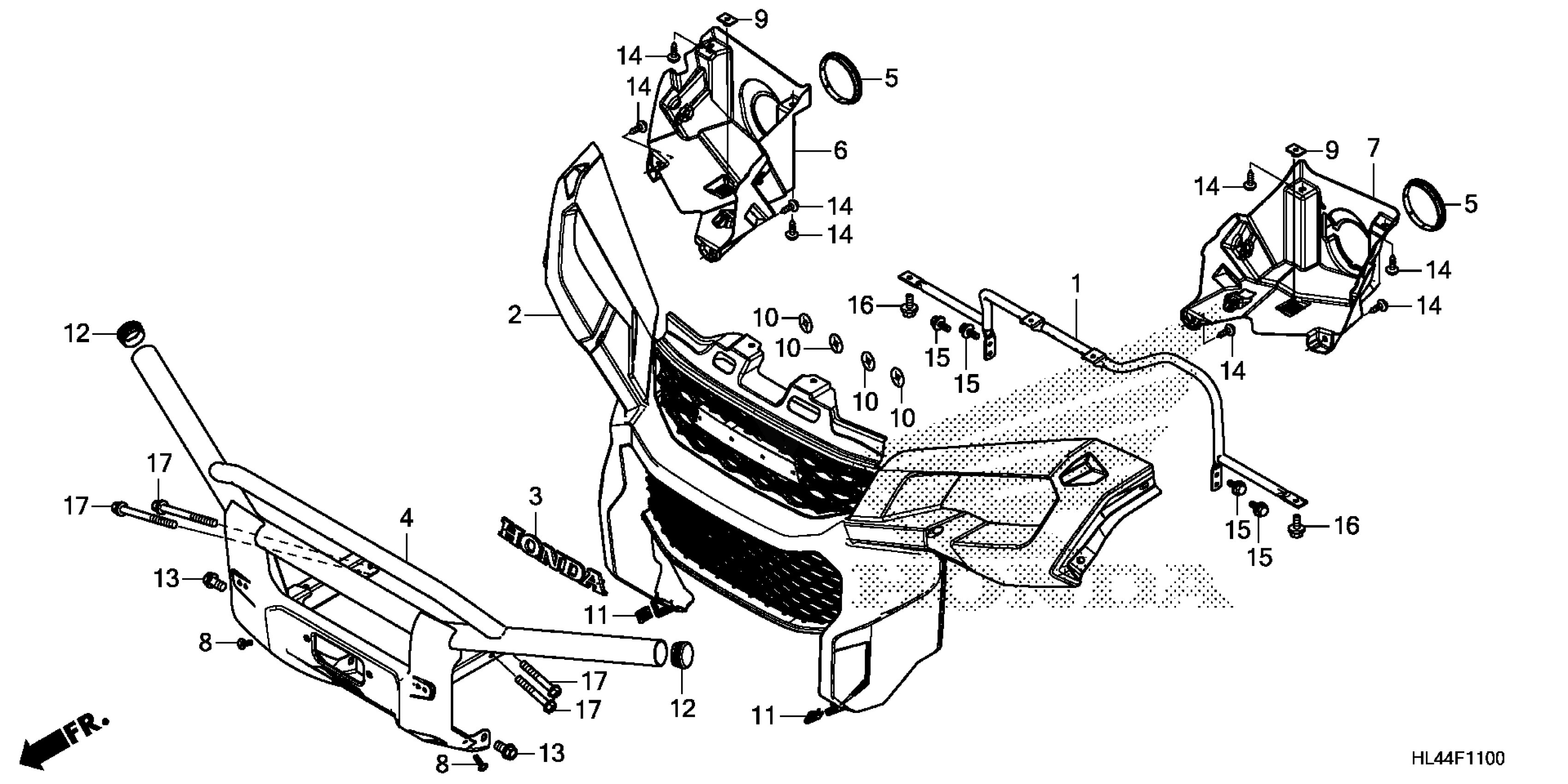 Honda SXS1000M3P2A (16) PIONEER 1000 EPS, USA, VIN# 1HFVE04E-G4000001 FRONT GRILLE@FRONT BUMPER Diagram