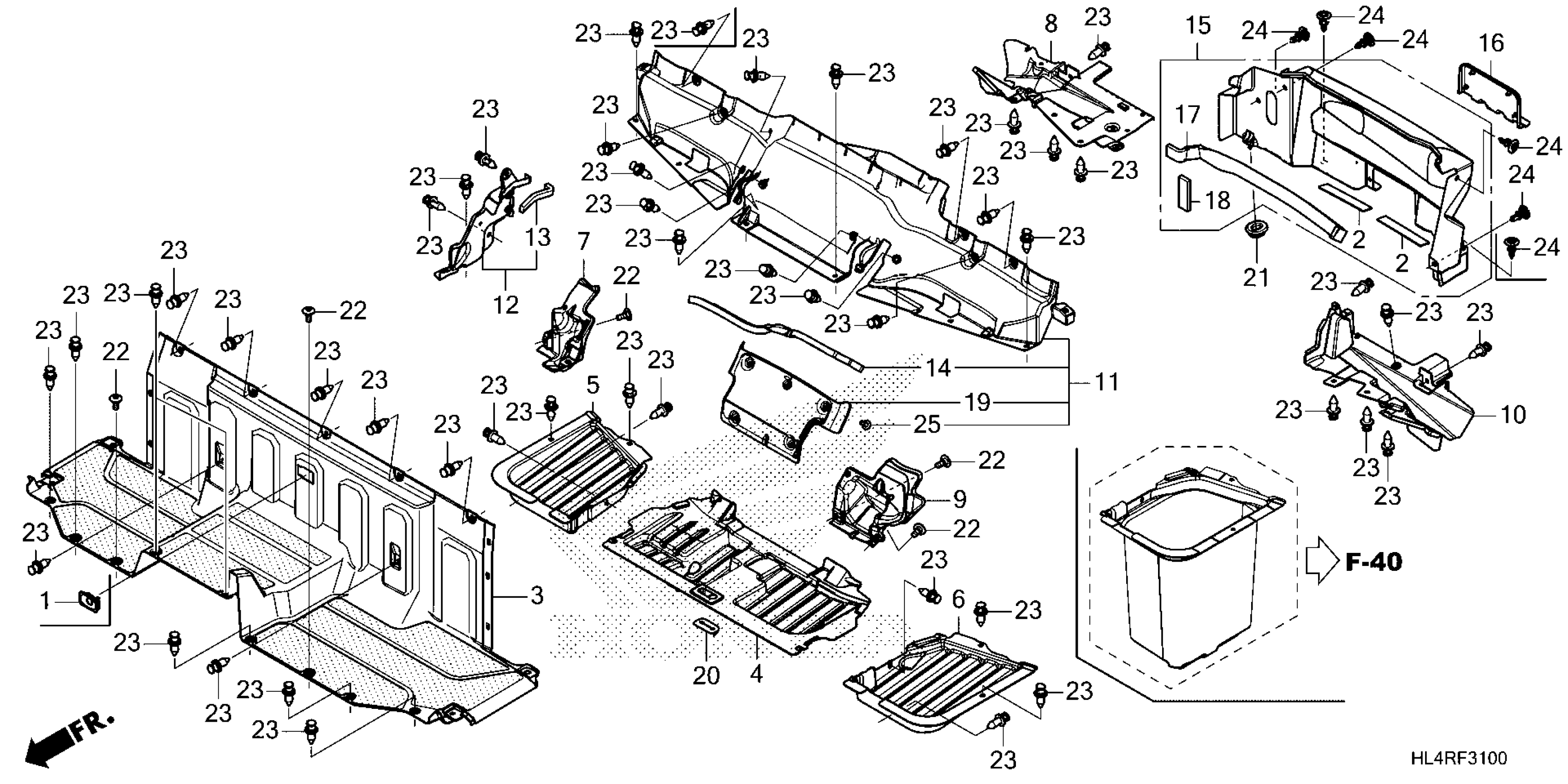 Honda SXS1000M5D6AC (24) ALL-TERRAIN VEHICLE (ATV), USA, VIN# 1HFVE04N-R4800001 TO 1HFVE04N-R4899999 SEAT BOTTOM COVER Diagram