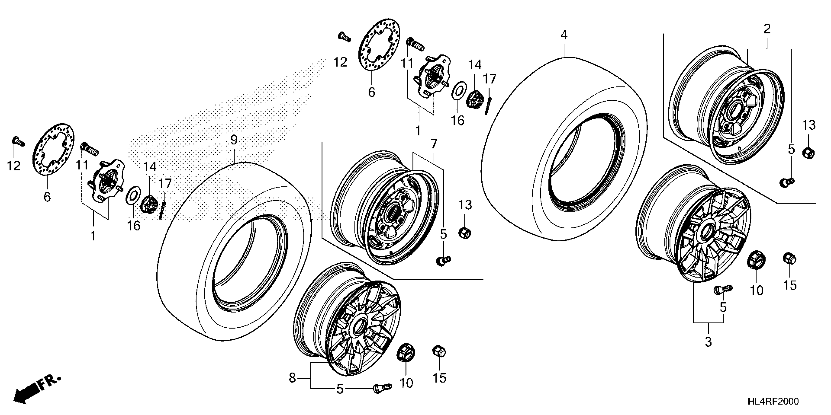 Honda SXS1000M5D7AC (24) ALL-TERRAIN VEHICLE (ATV), USA, VIN# 1HFVE04R-R4800001 TO 1HFVE04R-R4899999 WHEEL Diagram