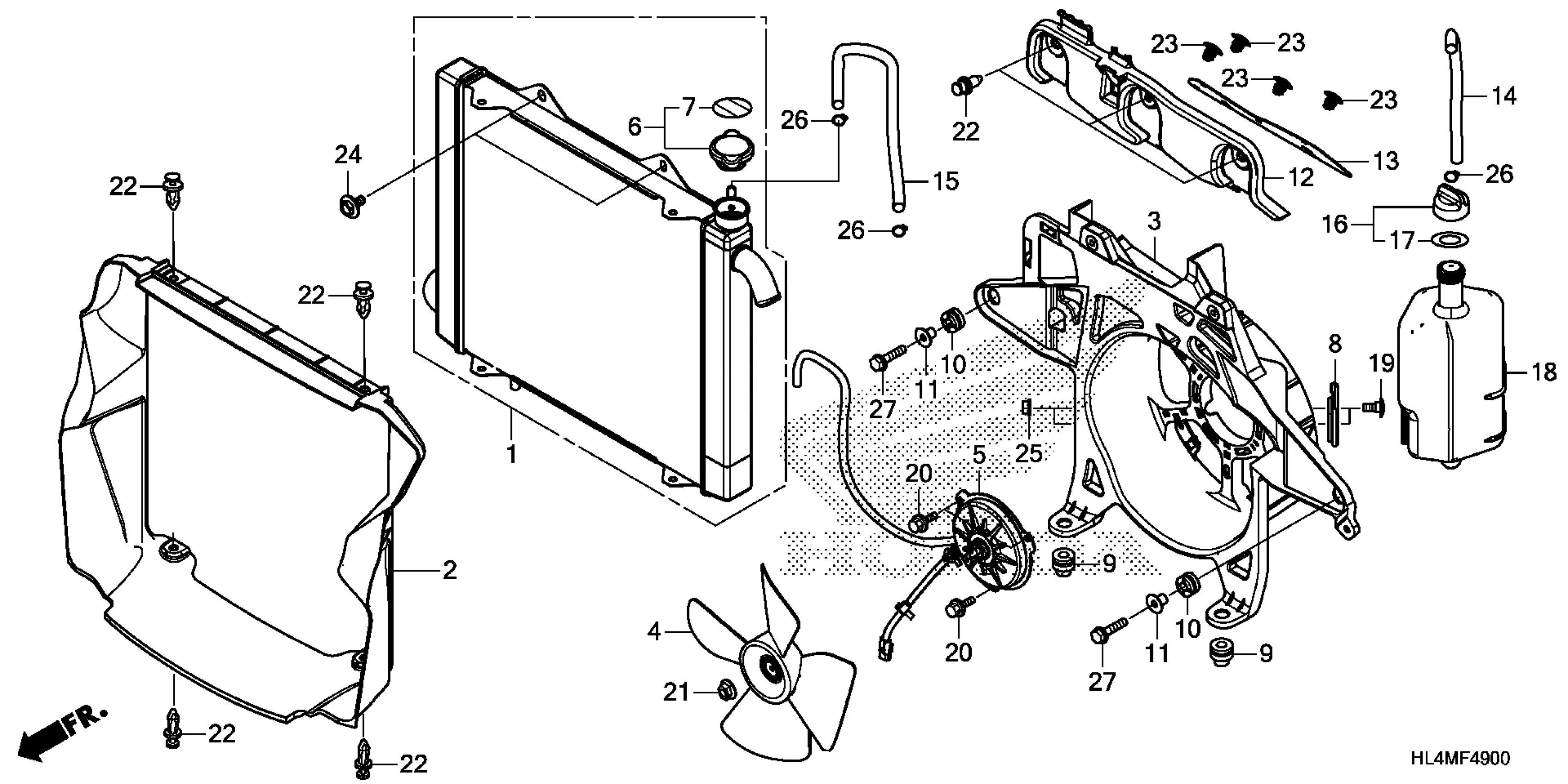Honda SXS1000M5DAC (21) ALL-TERRAIN VEHICLE (ATV), USA, VIN# 1HFVE04J-M4500001 RADIATOR Diagram