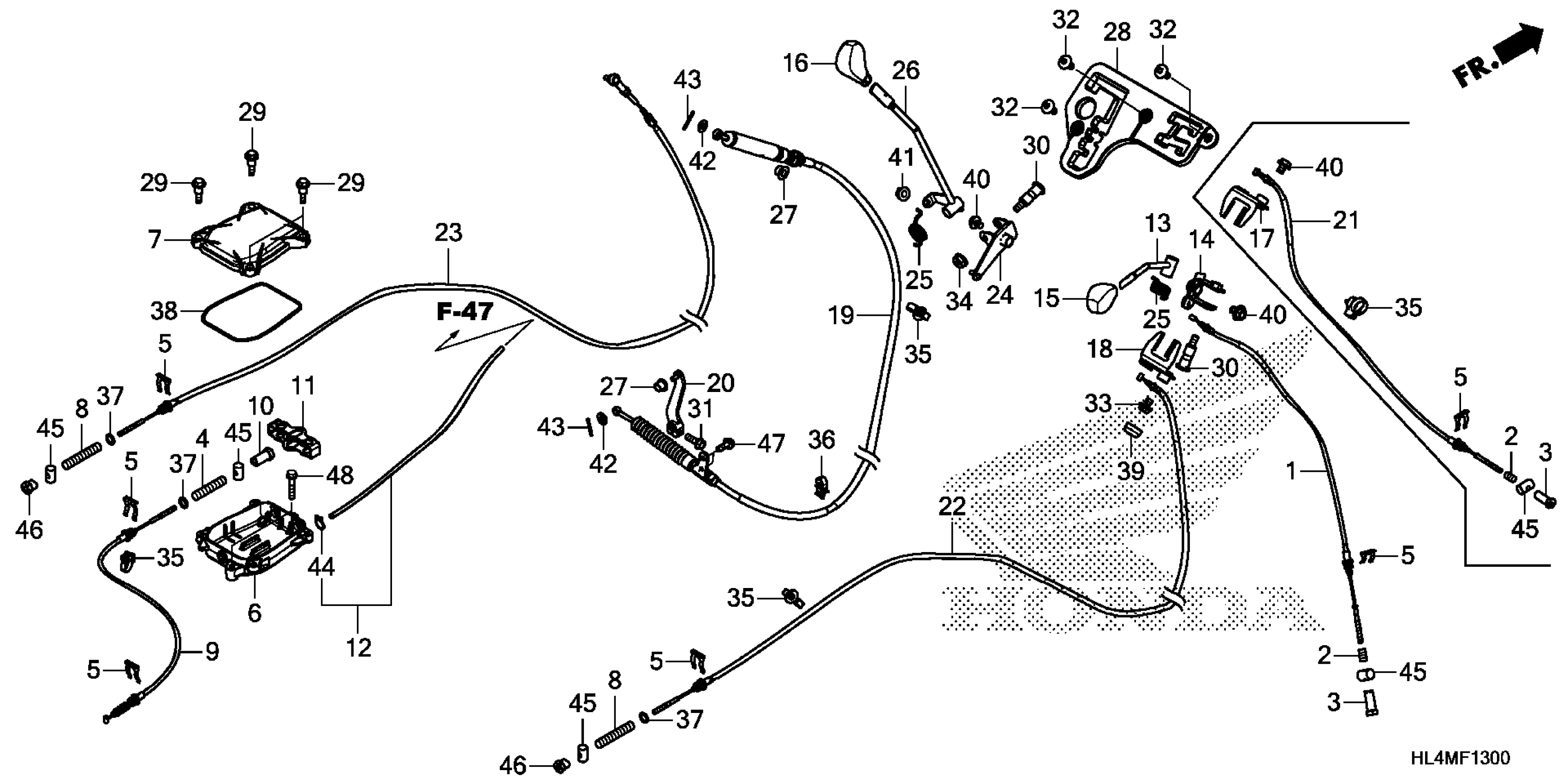 Honda SXS1000M5DAC (21) ALL-TERRAIN VEHICLE (ATV), USA, VIN# 1HFVE04J-M4500001 SHIFT LEVER@SELECT LEVER Diagram