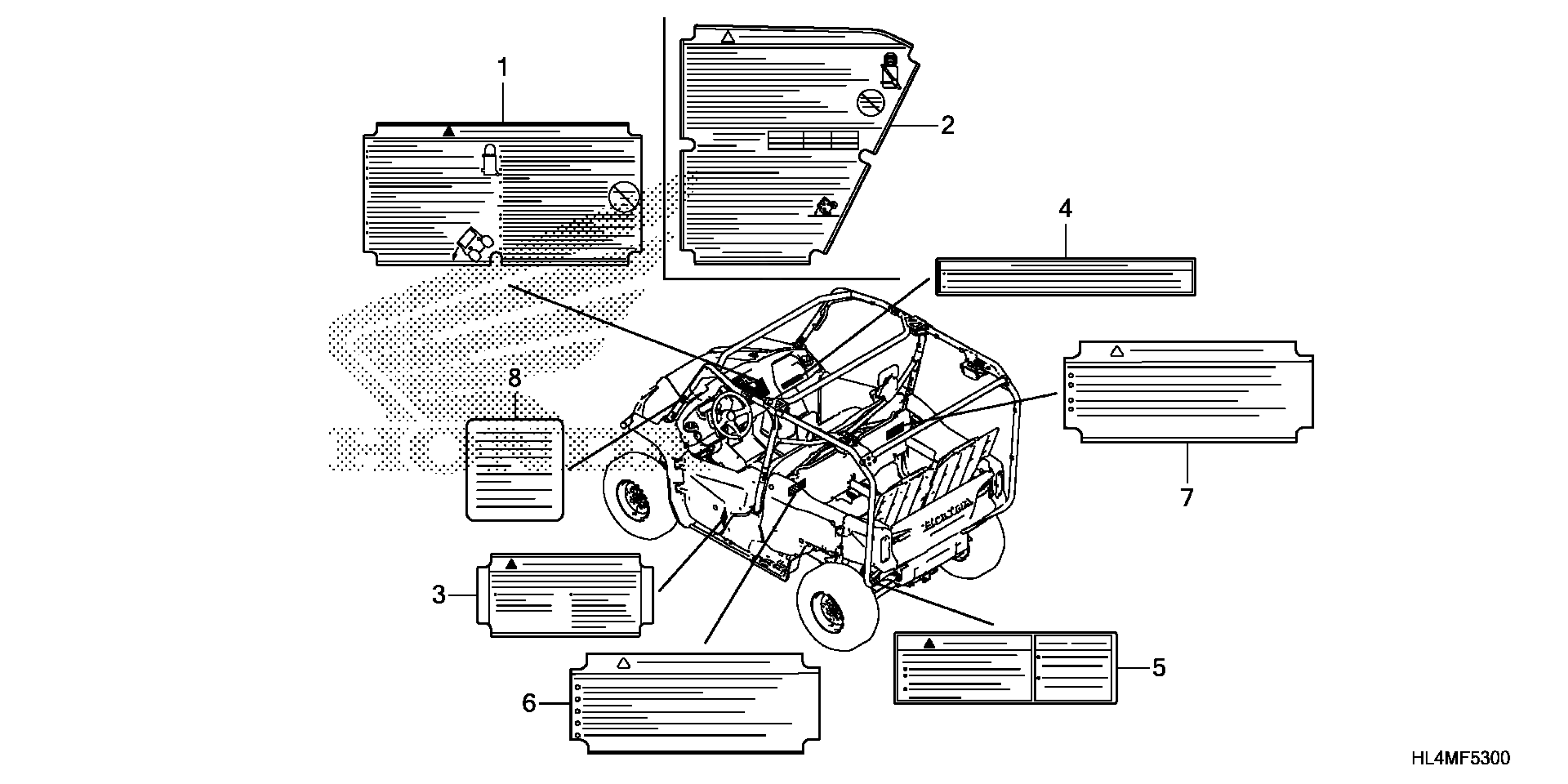Honda SXS1000M5L8A (21) ALL-TERRAIN VEHICLE (ATV), USA, VIN# 1HFVE04G-M4500001 CAUTION LABELS Diagram