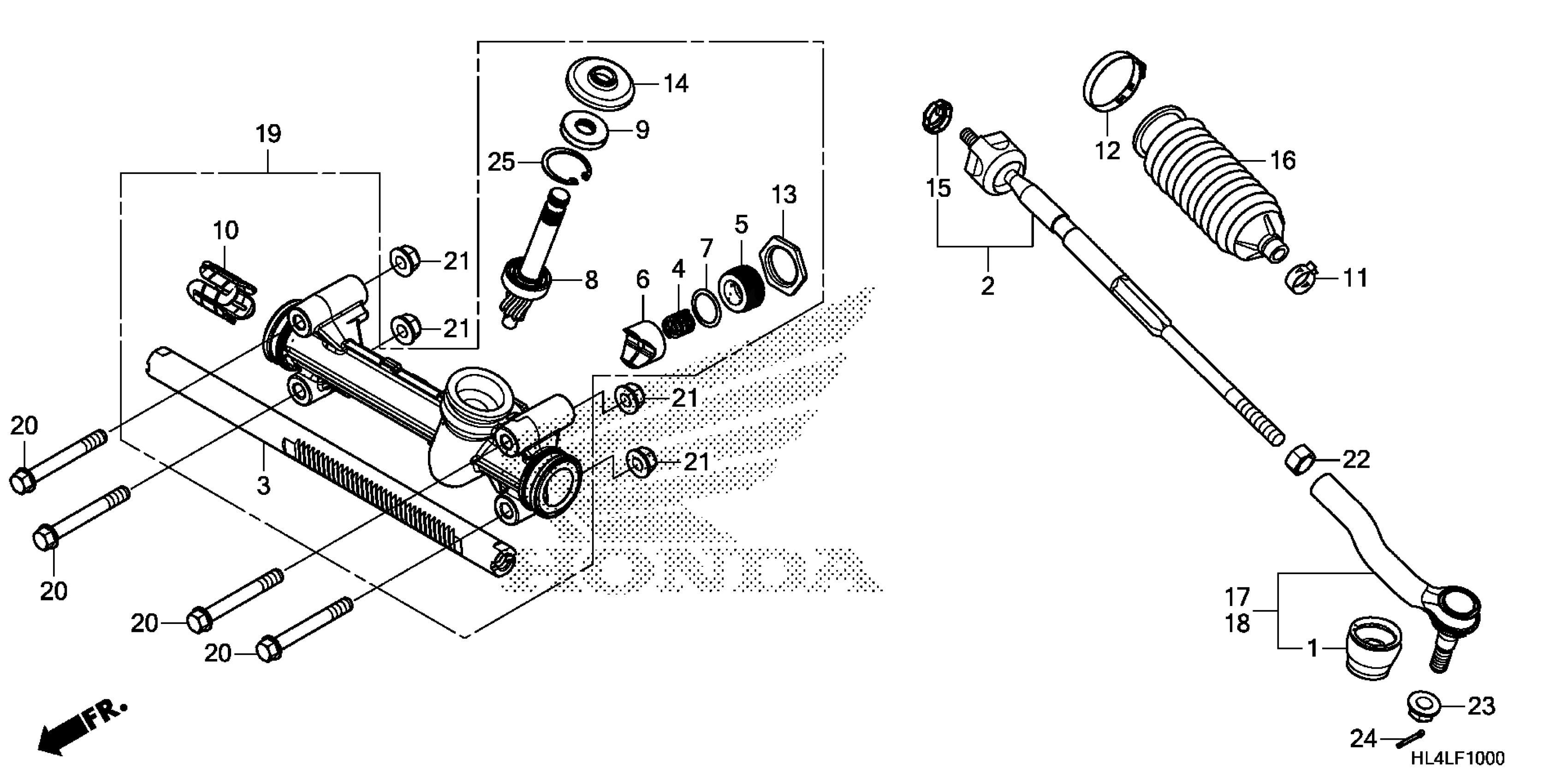 Honda SXS1000M5PAC (20) ALL-TERRAIN VEHICLE (ATV), USA, VIN# 1HFVE04H-L4400001 STEERING GEAR BOX@TIE ROD Diagram