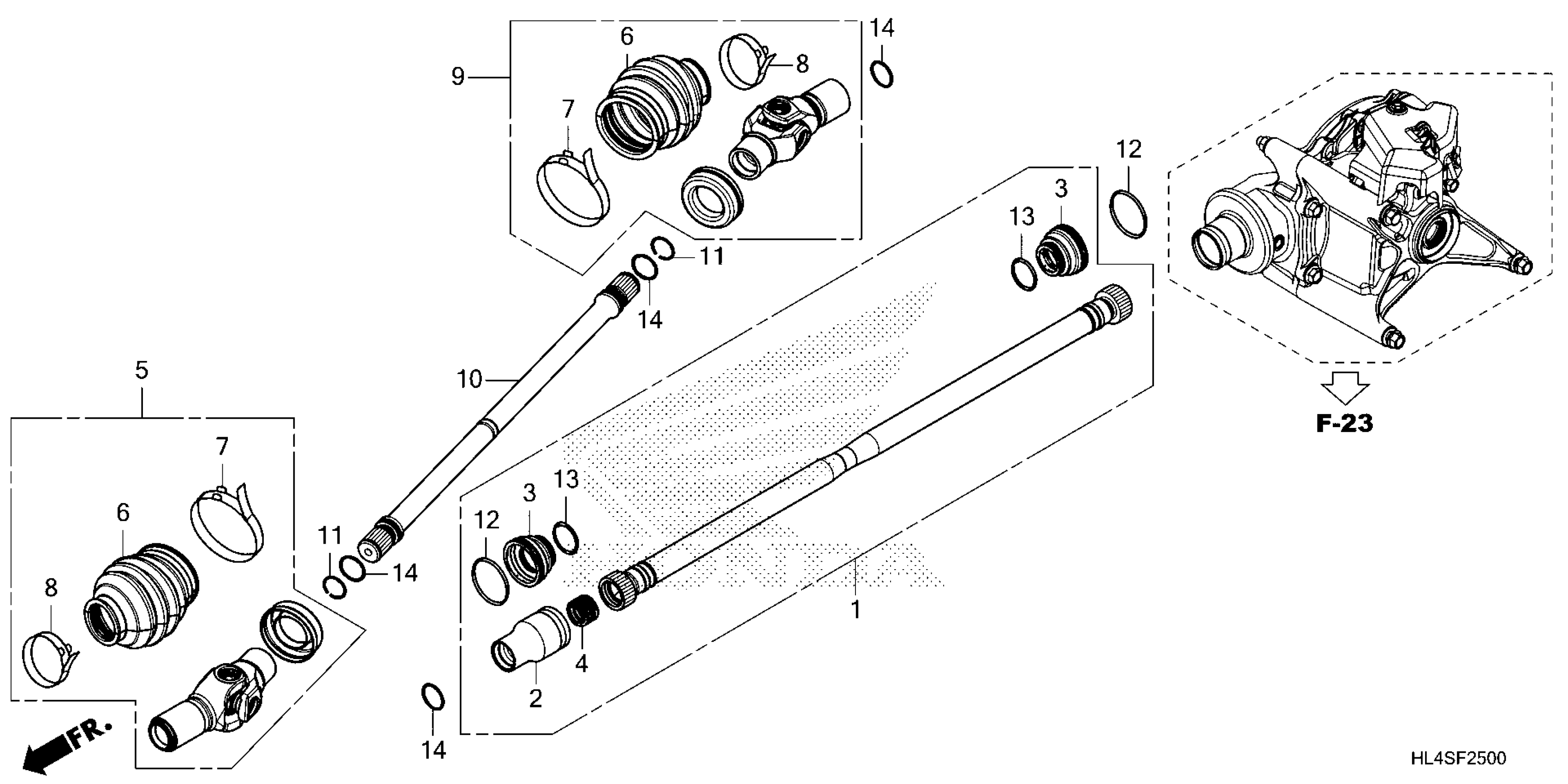 Honda SXS1000M5PAC (25) ALL-TERRAIN VEHICLE (ATV), USA, VIN# 1HFVE04H-S4900001 TO 1HFVE04H-S4999999 PROPELLER SHAFT Diagram