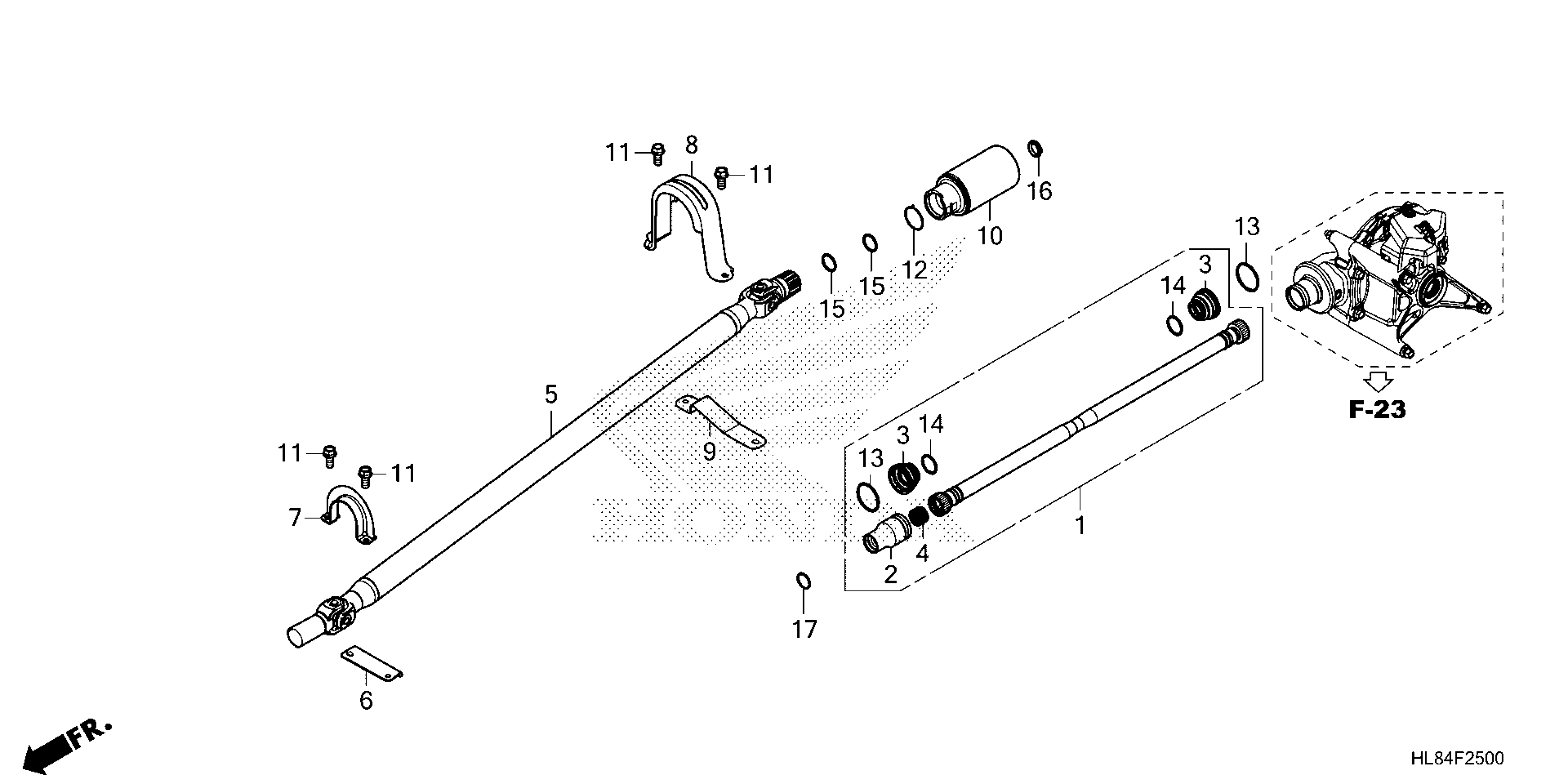 Honda SXS1000M6D2A (25) ALL-TERRAIN VEHICLE (ATV), USA, VIN# 1HFVE082-S4200001 TO 1HFVE082-S4299999 PROPELLER SHAFT Diagram