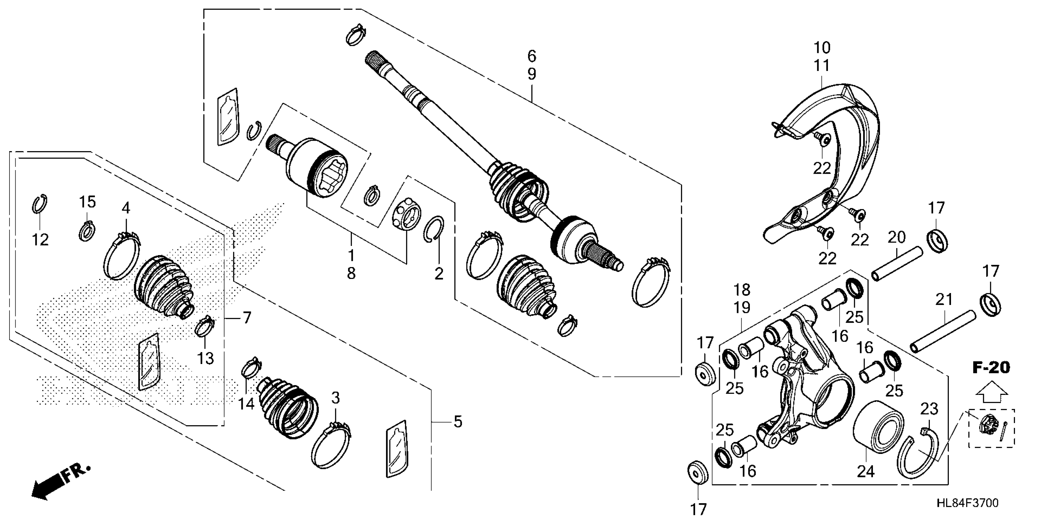 Honda SXS1000M6D2A (25) ALL-TERRAIN VEHICLE (ATV), USA, VIN# 1HFVE082-S4200001 TO 1HFVE082-S4299999 REAR KNUCKLE@REAR DRIVESHAFT Diagram