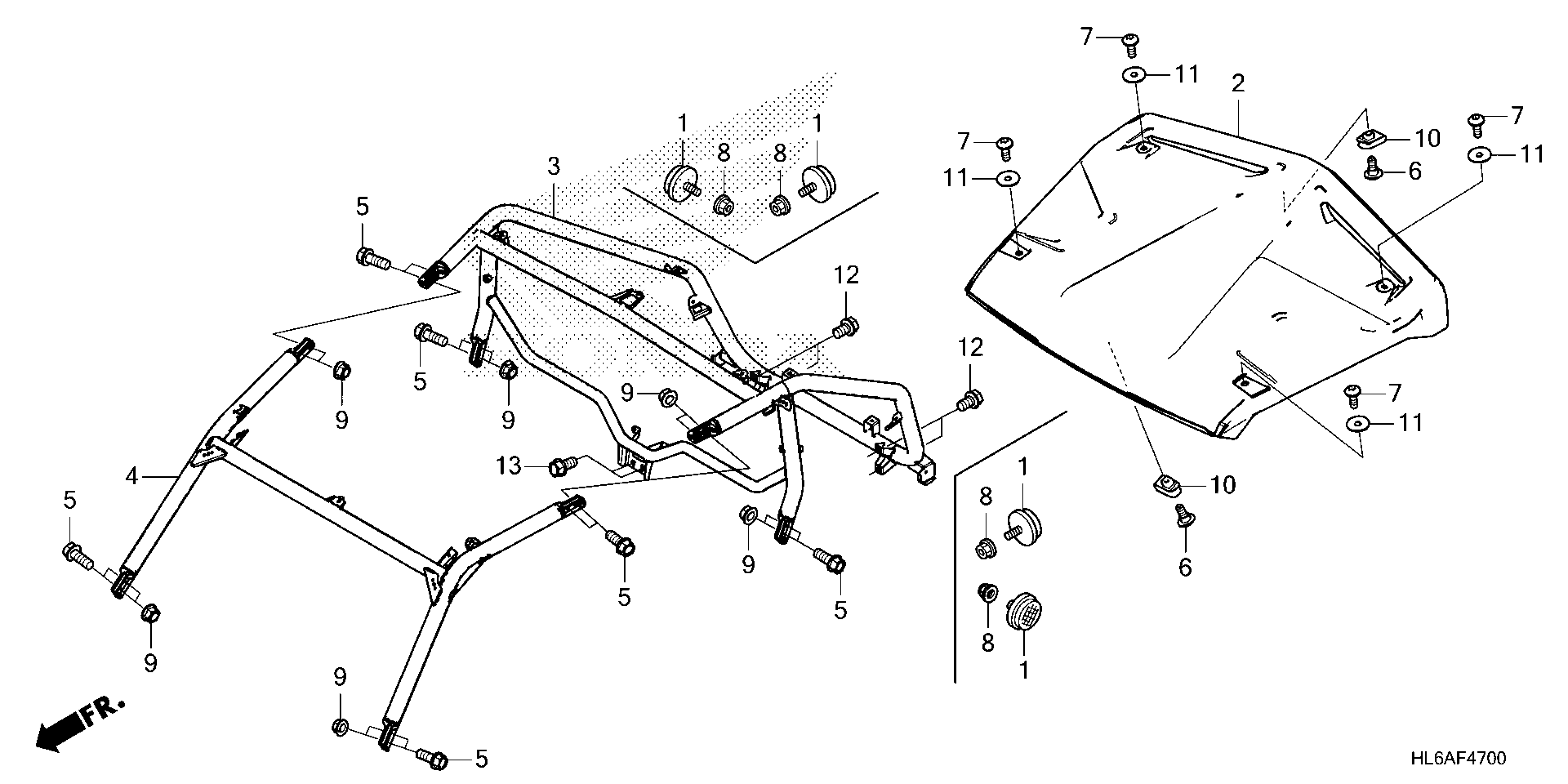 Honda SXS1000S2R4A (23) ALL-TERRAIN VEHICLE (ATV), USA, VIN# 1HFVE05M-P4400001 TO 1HFVE05M-P4999999 ROLL BAR@ROOF Diagram