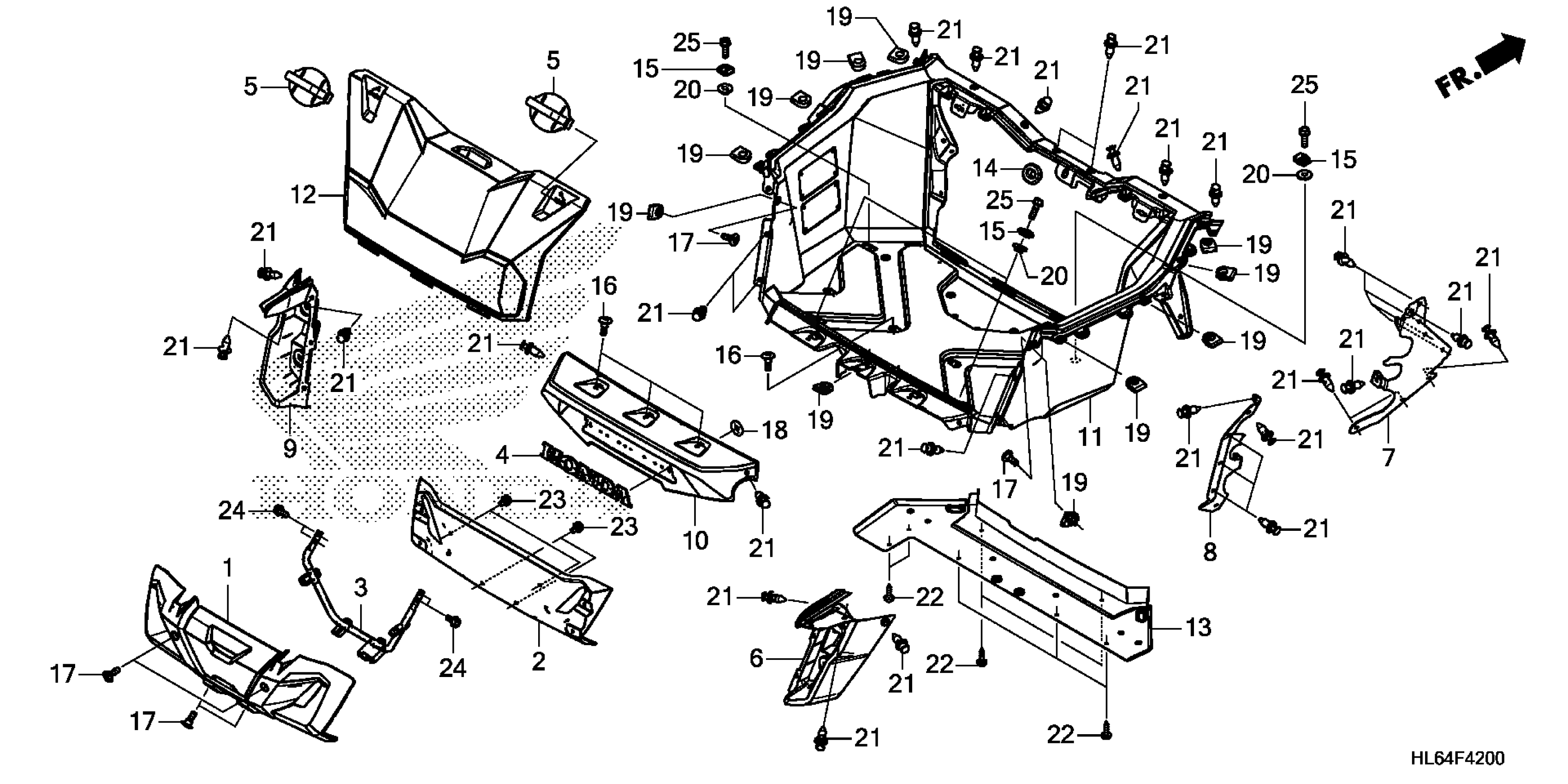 Honda SXS1000S2R5AC (22) ALL-TERRAIN VEHICLE (ATV), USA, VIN# 1HFVE058-N4300001 BED PLATE Diagram