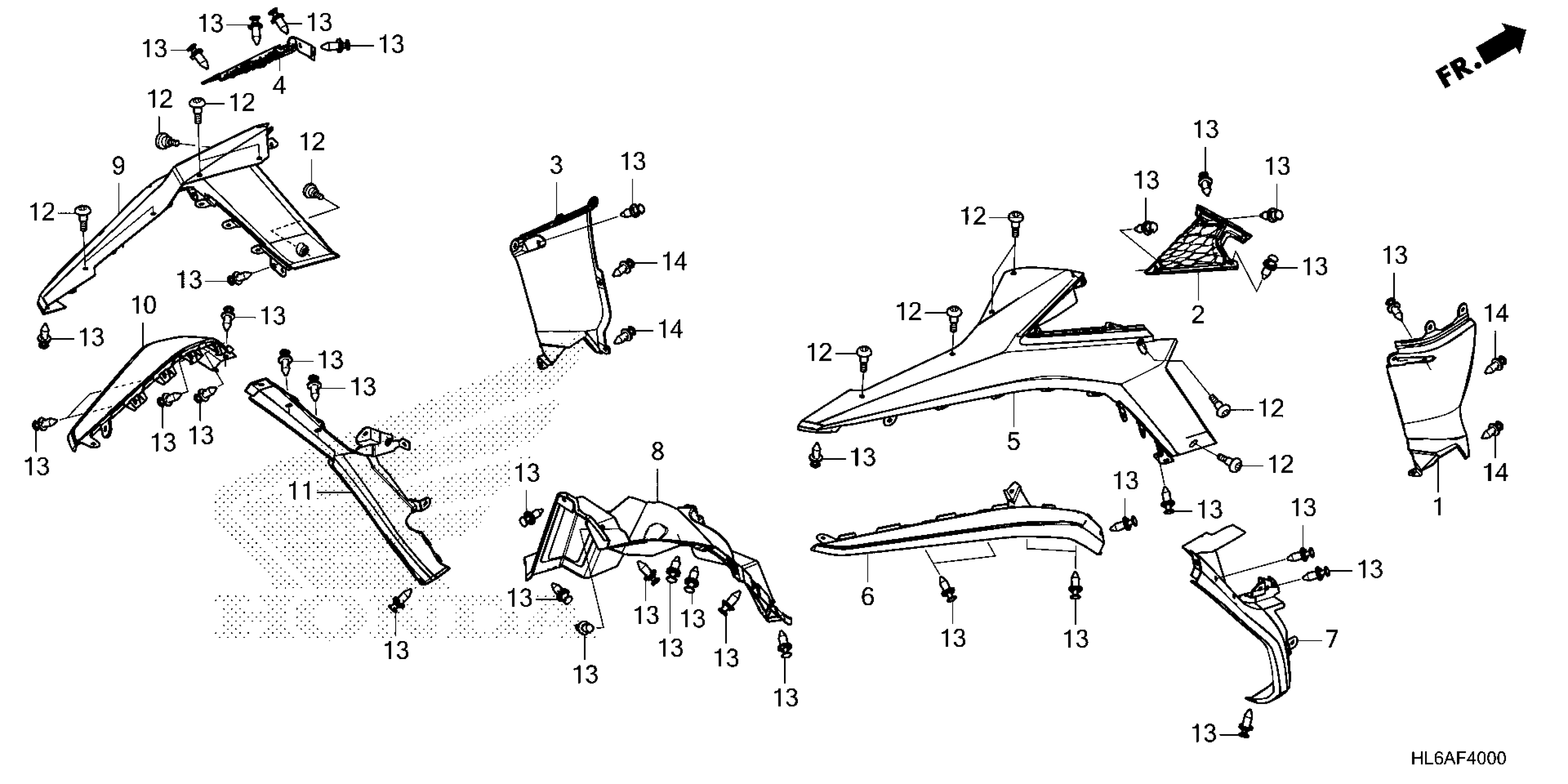 Honda SXS1000S2X5AC (25) ALL-TERRAIN VEHICLE (ATV), USA, VIN# 1HFVE050-S4600001 TO 1HFVE050-S4699999 REAR FENDER Diagram