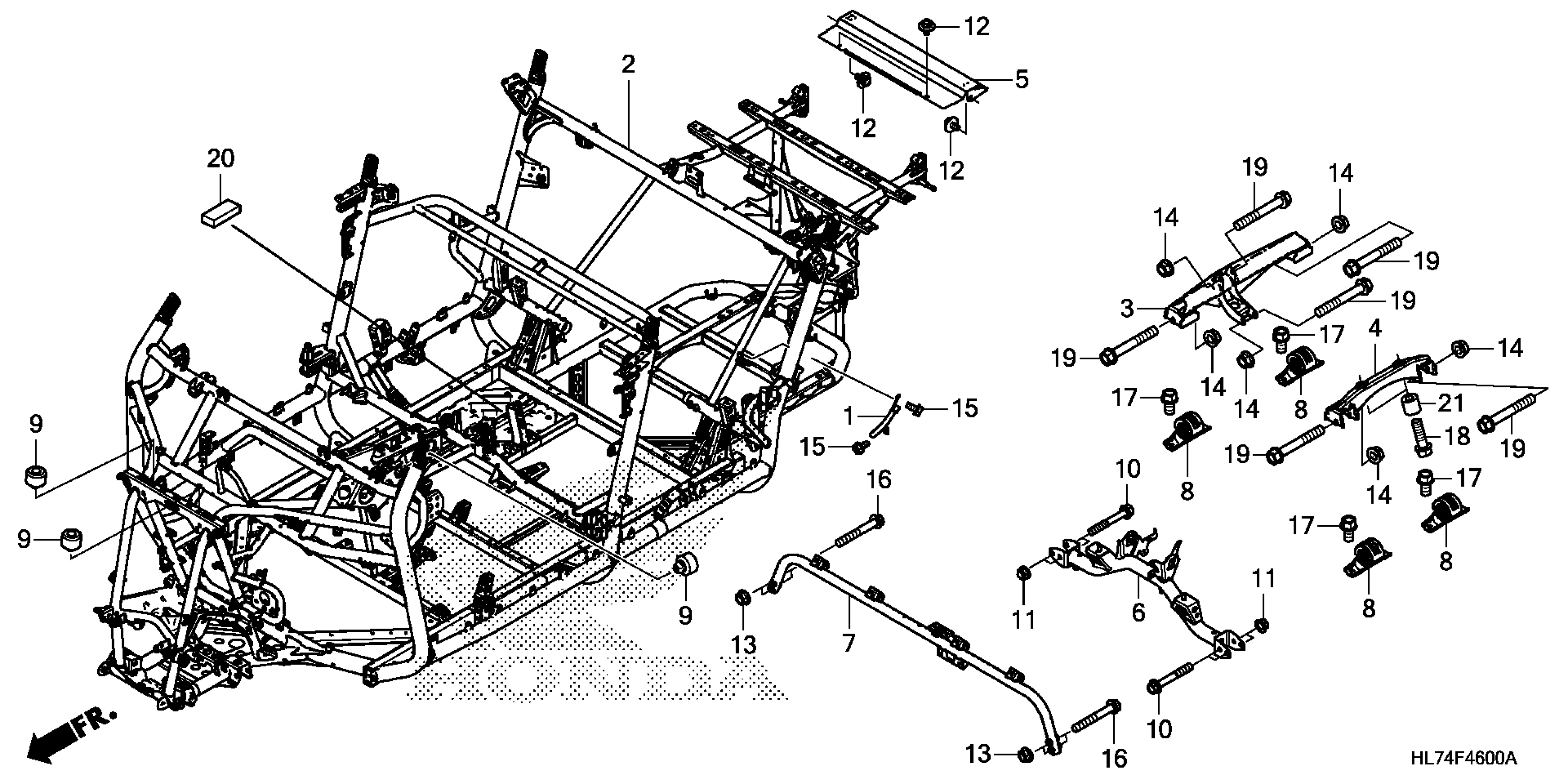 Honda SXS1000S4X5A (21) ALL-TERRAIN VEHICLE (ATV), USA, VIN# 1HFVE06E-M4100001 TO 1HFVE06E-M4199999 FRAME Diagram