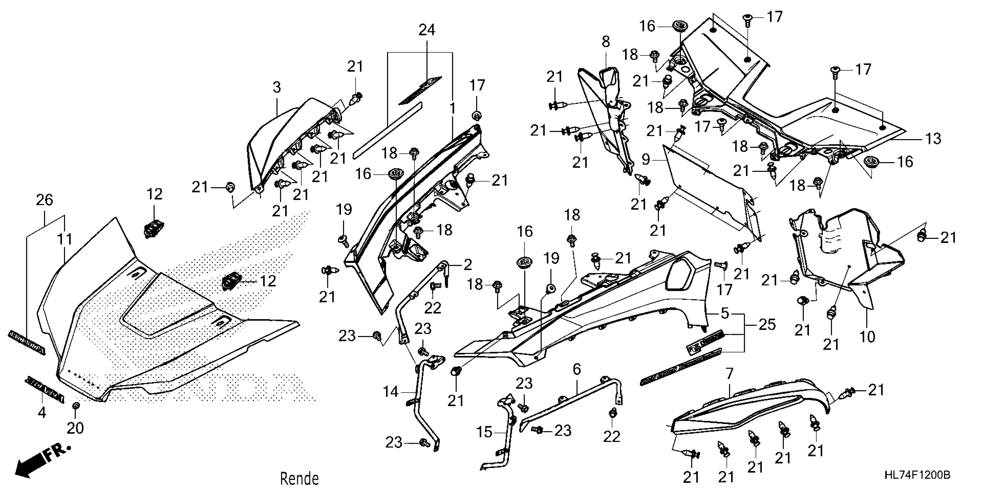 Honda SXS1000S4X5A (21) ALL-TERRAIN VEHICLE (ATV), USA, VIN# 1HFVE06E-M4100001 TO 1HFVE06E-M4199999 FRONT FENDER@HOOD Diagram