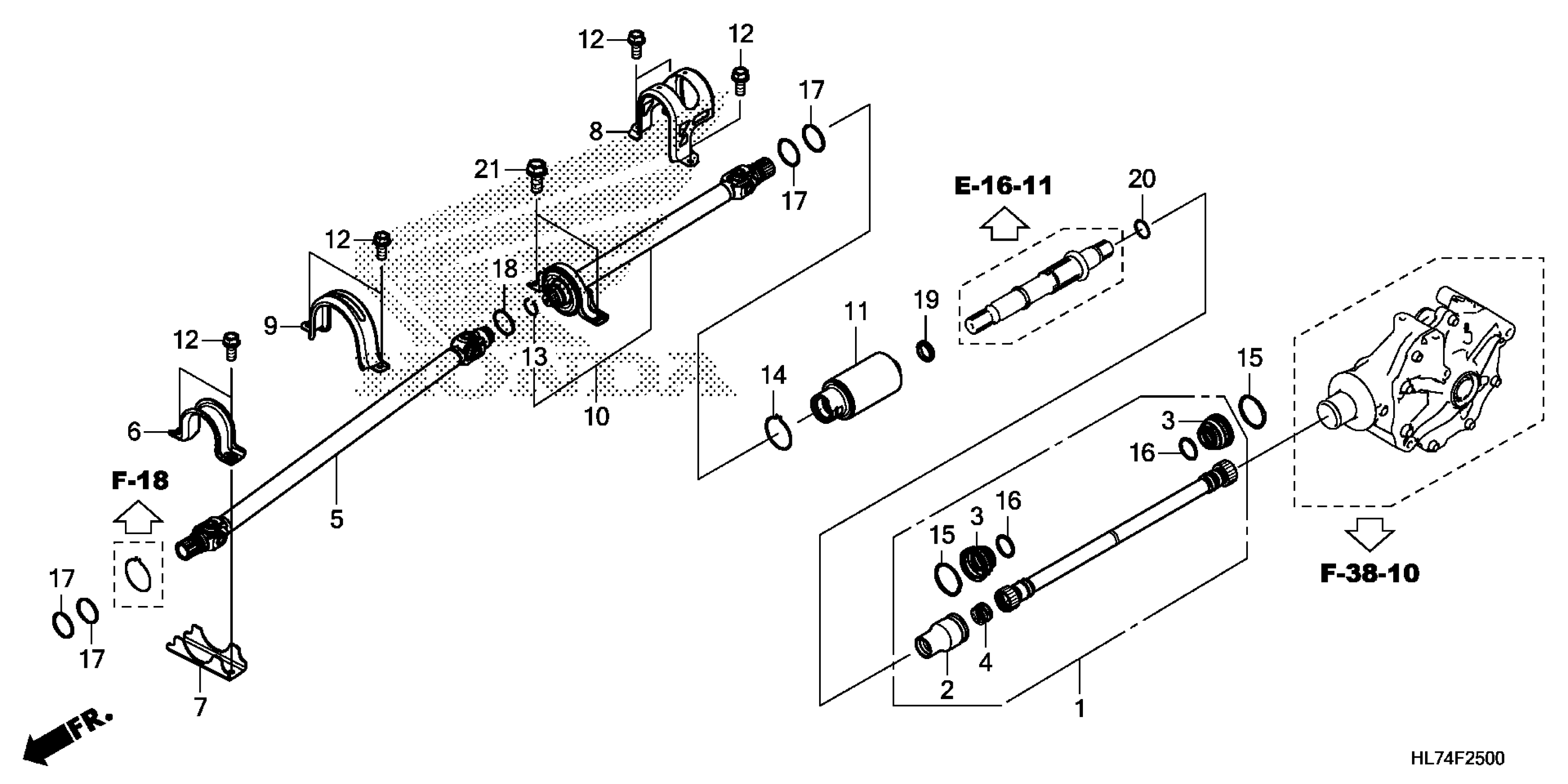 Honda SXS1000S4XA (21) ALL-TERRAIN VEHICLE (ATV), USA, VIN# 1HFVE06A-M4100001 TO 1HFVE06A-M4199999 PROPELLER SHAFT Diagram