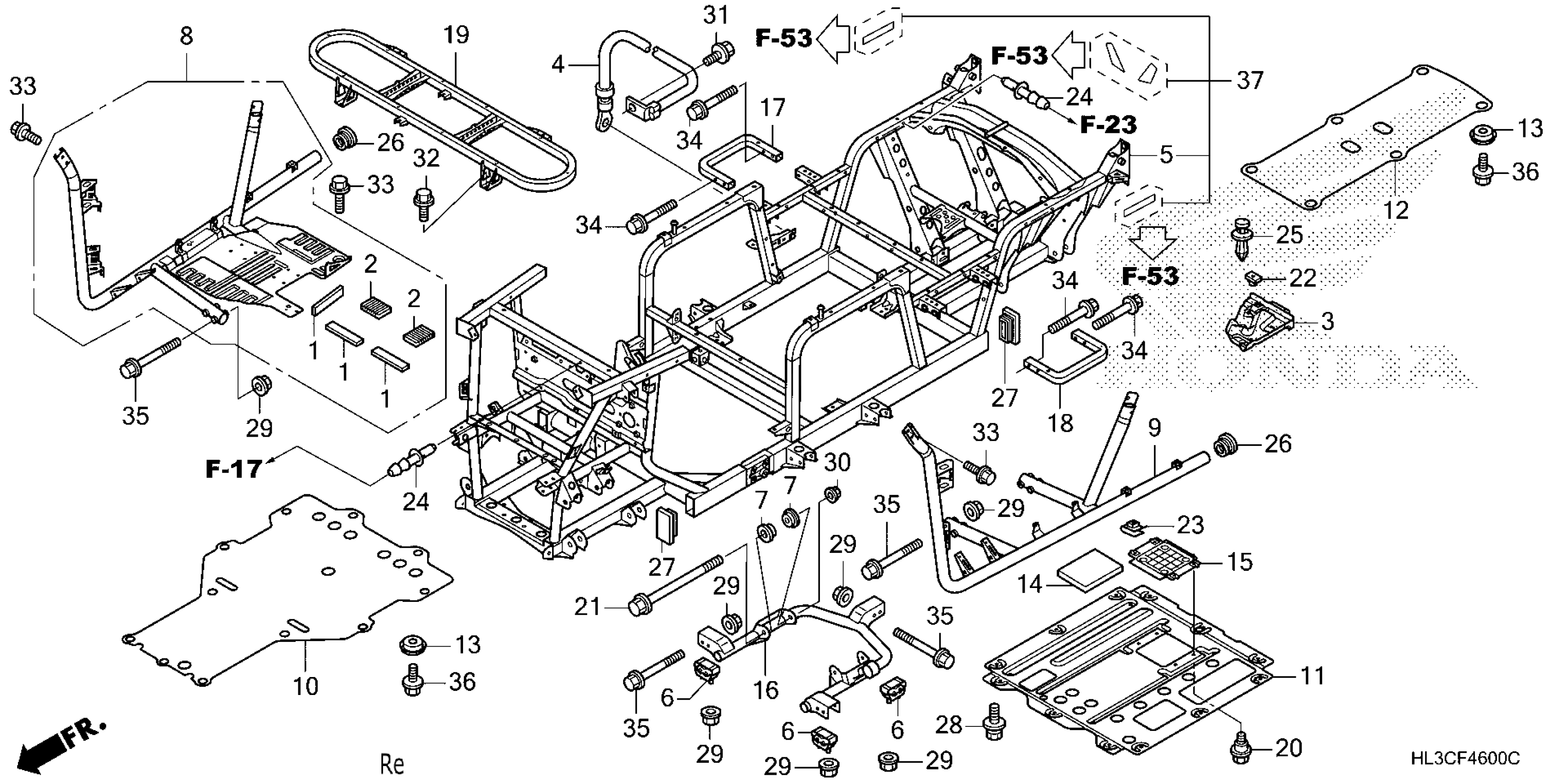Honda SXS700M2DAC (22) ALL-TERRAIN VEHICLE (ATV), USA, VIN# 1HFVE02N-N4800001 FRAME Diagram