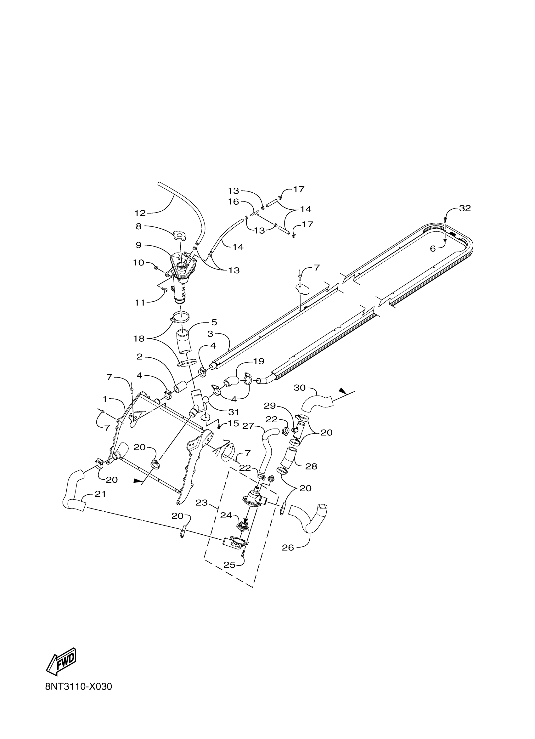 Yamaha SXV4NPL (SXVENOM) 8NT5 2023 RADIATOR & HOSE Diagram