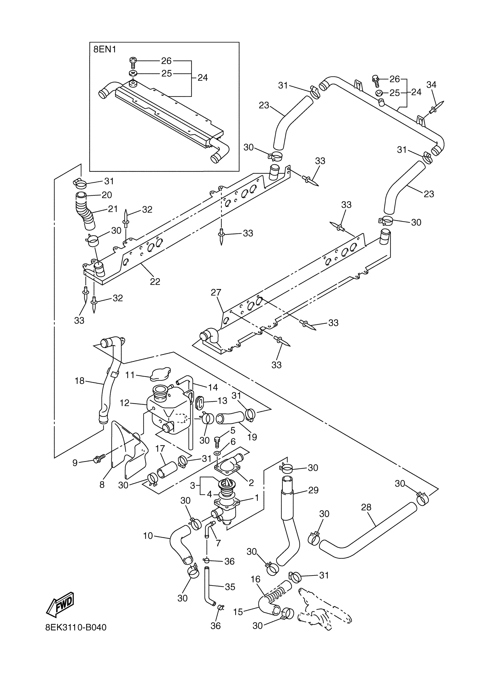 Yamaha SXV70MH (SX Viper Mountain) 8EN1 2003 RADIATOR HOSE Diagram