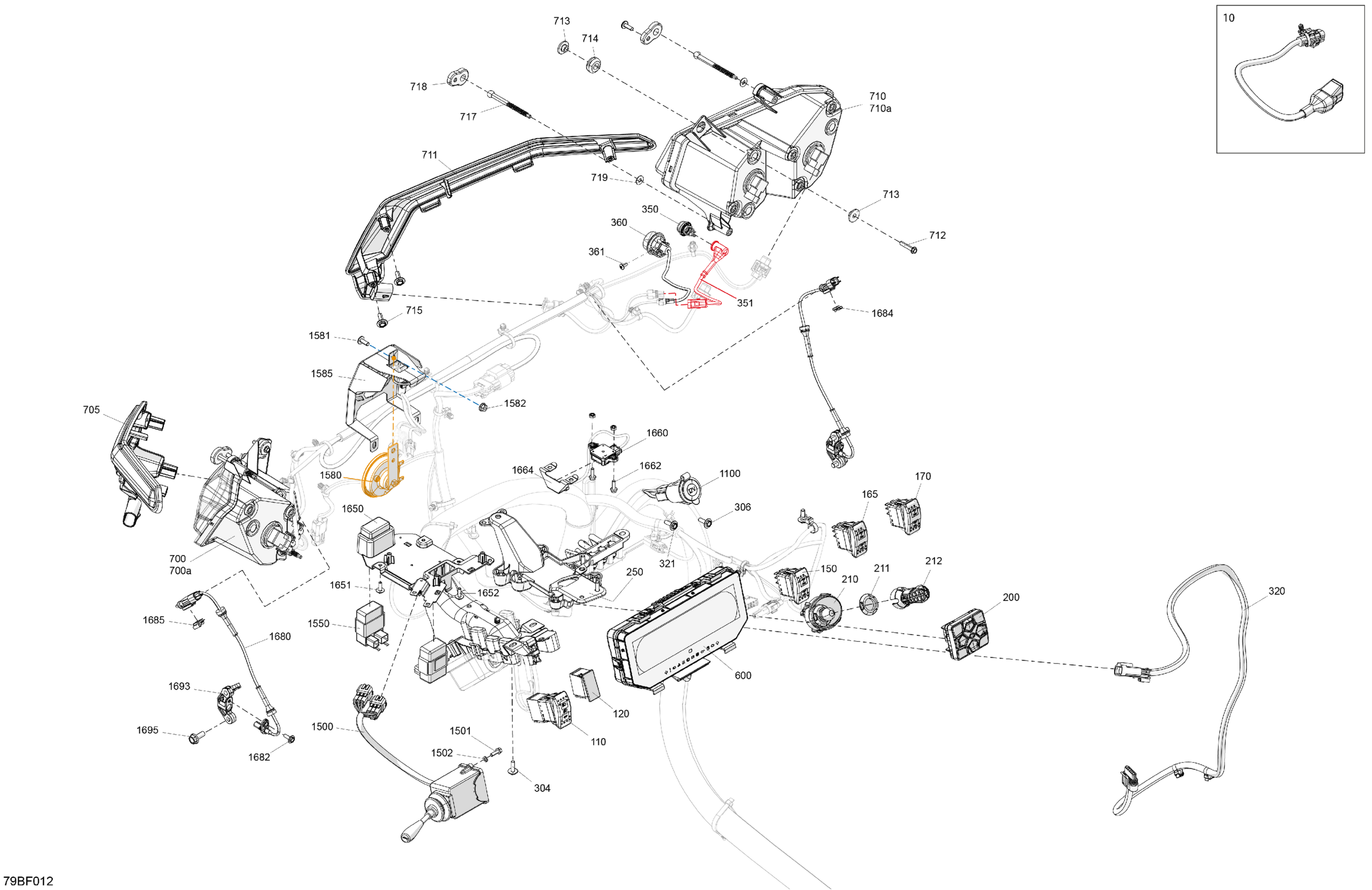 Can-Am Maverick Trail - 700 EFI - DPS - 7HTD - Timeless Black Metallic - 50" Width, 2026 Electric - Front Section Diagram