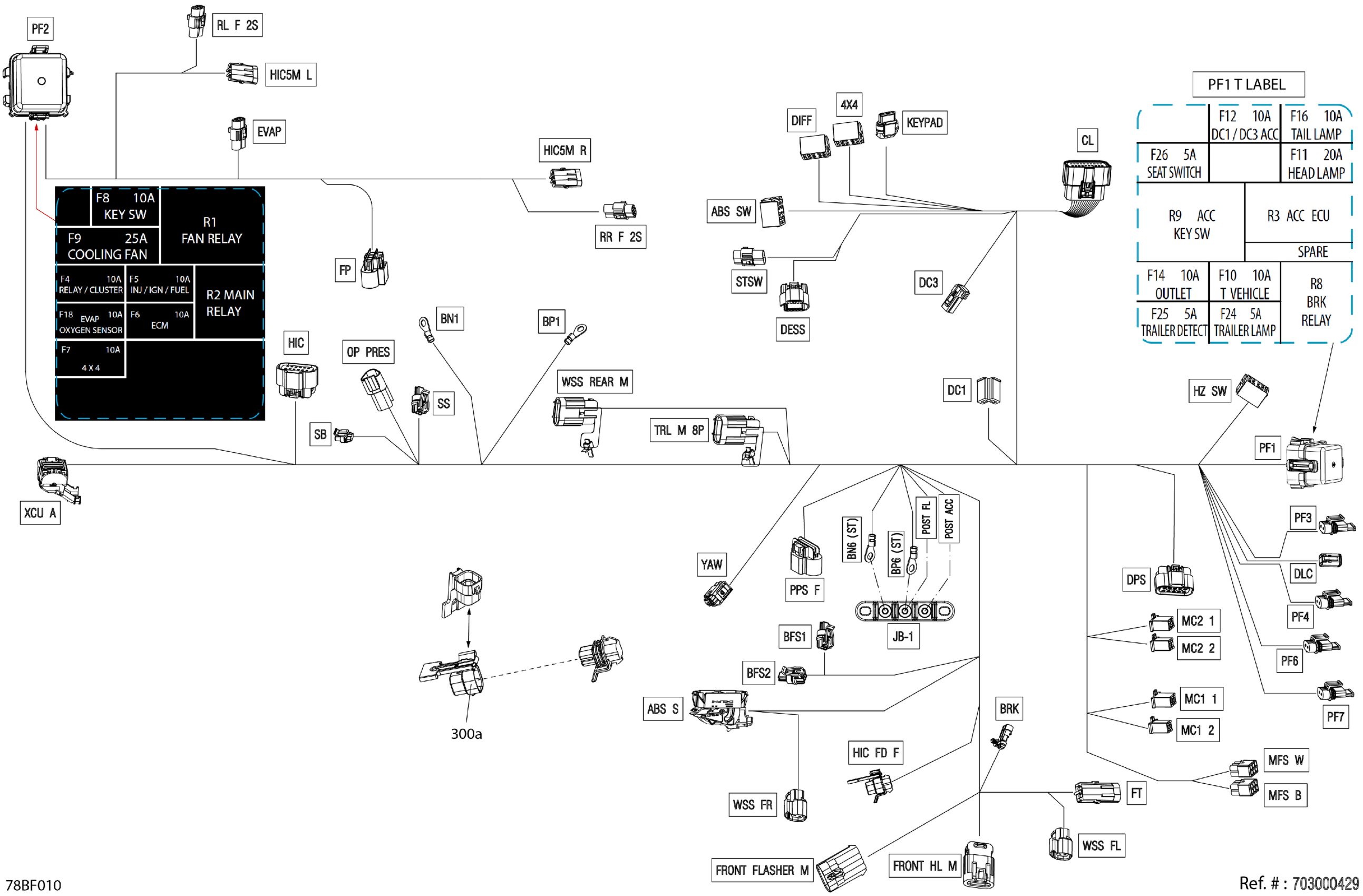 Can-Am Maverick Trail - 700 EFI - DPS - 7HTD - Timeless Black Metallic - 50" Width, 2026 Electric - Main Harness - 710008859 Diagram