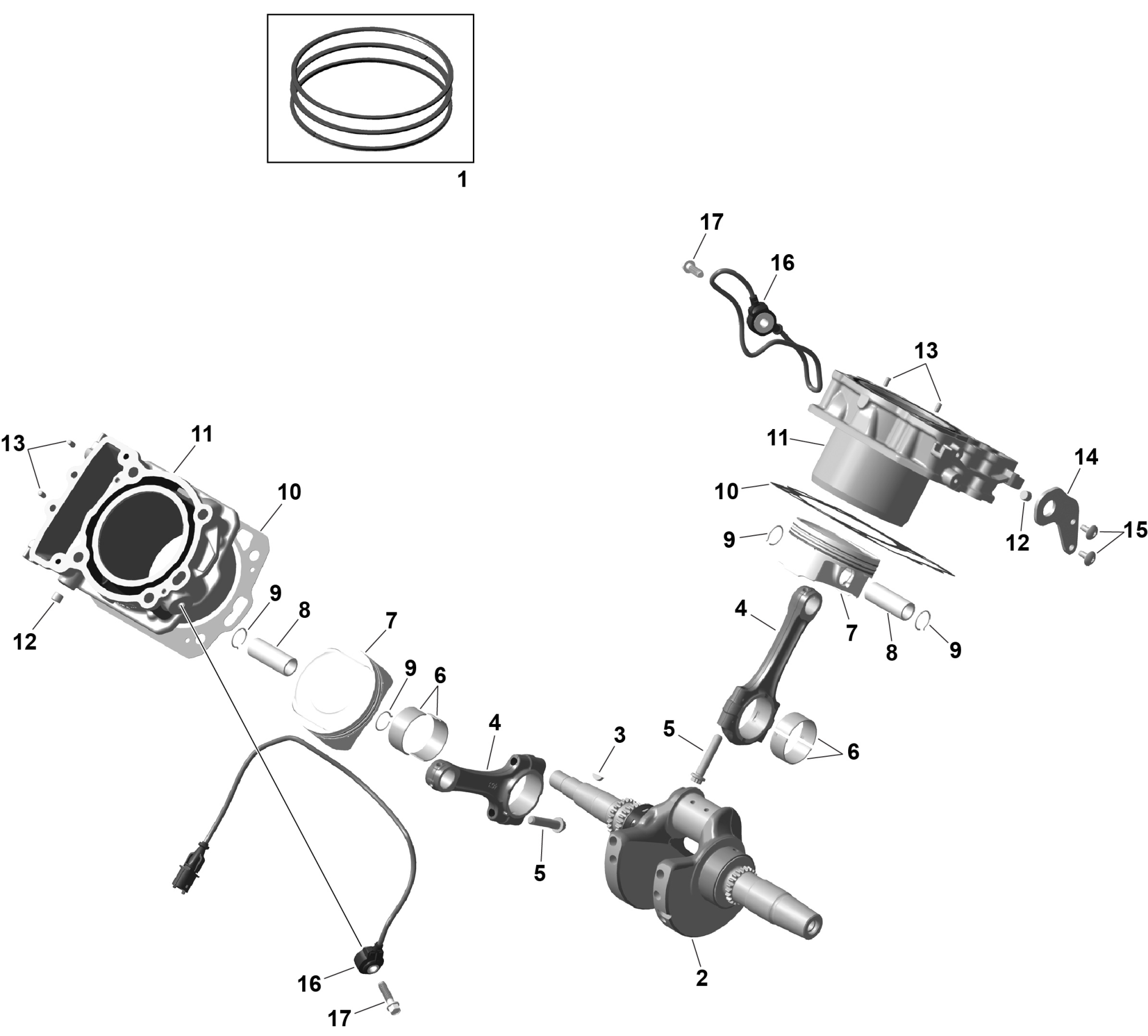 Can-Am Off-Road T Regulation - OUT-MAX - 4X4 - XT - 850 - 4STD - Fiery Red Metallic - 2026 01- ROTAX - Crankshaft and Pistons Diagram
