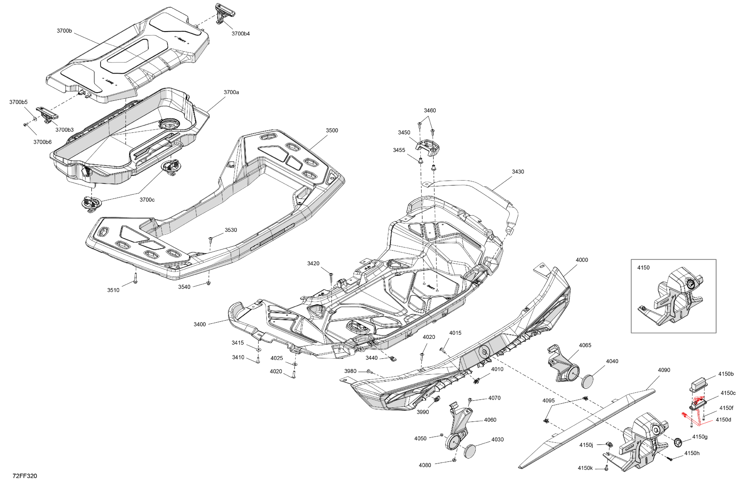 Can-Am Off-Road T Regulation - OUT-MAX - 4X4 - XT - 850 - 4STD - Fiery Red Metallic - 2026 07- Body - Rear Section Diagram
