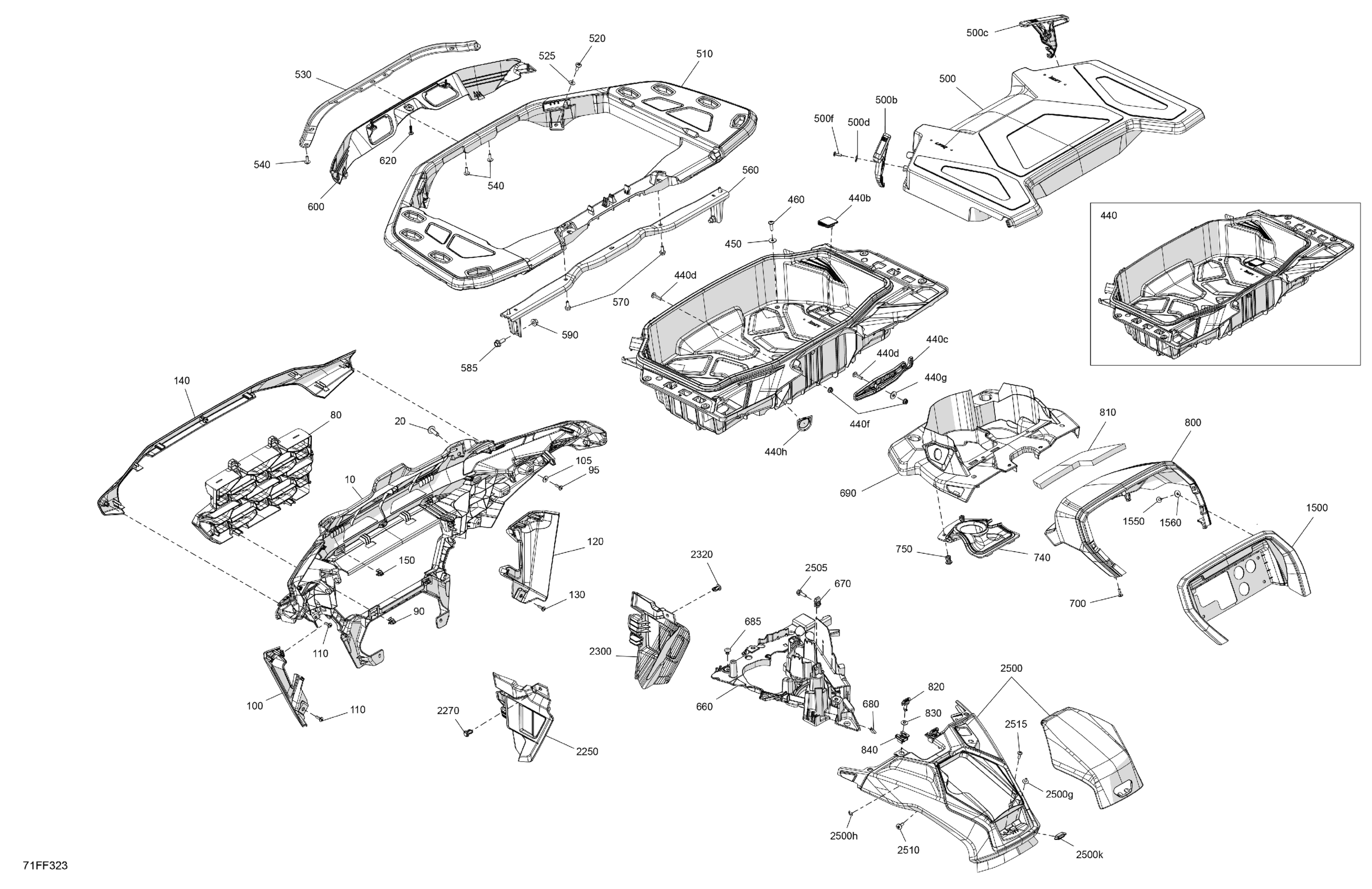 Can-Am Off-Road T Regulation - OUT-MAX - 4X4 - XTP - 1000R - 4VTN - Mineral Gray Satin - 2026 07- Body - Front Section Diagram