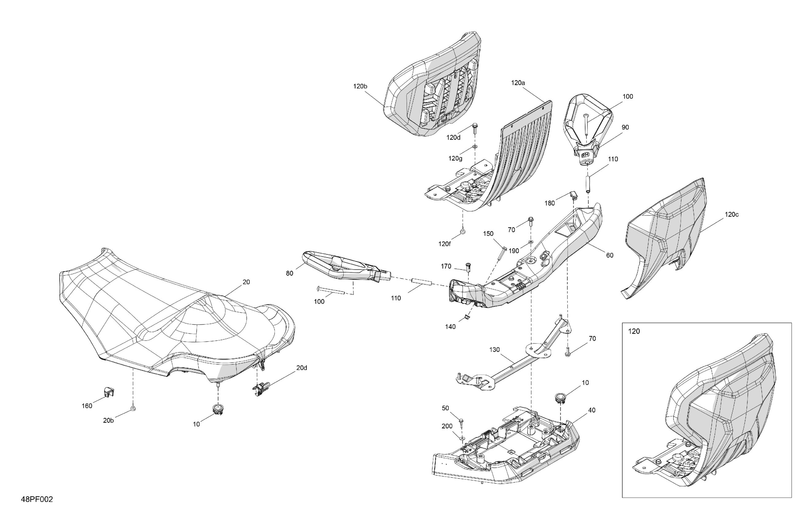 Can-Am Off-Road T Regulation - OUT-MAX - 6X6 - DPS - 700 EFI - 2FTD - Granite Grey - 2026 07- Body - Seat Diagram