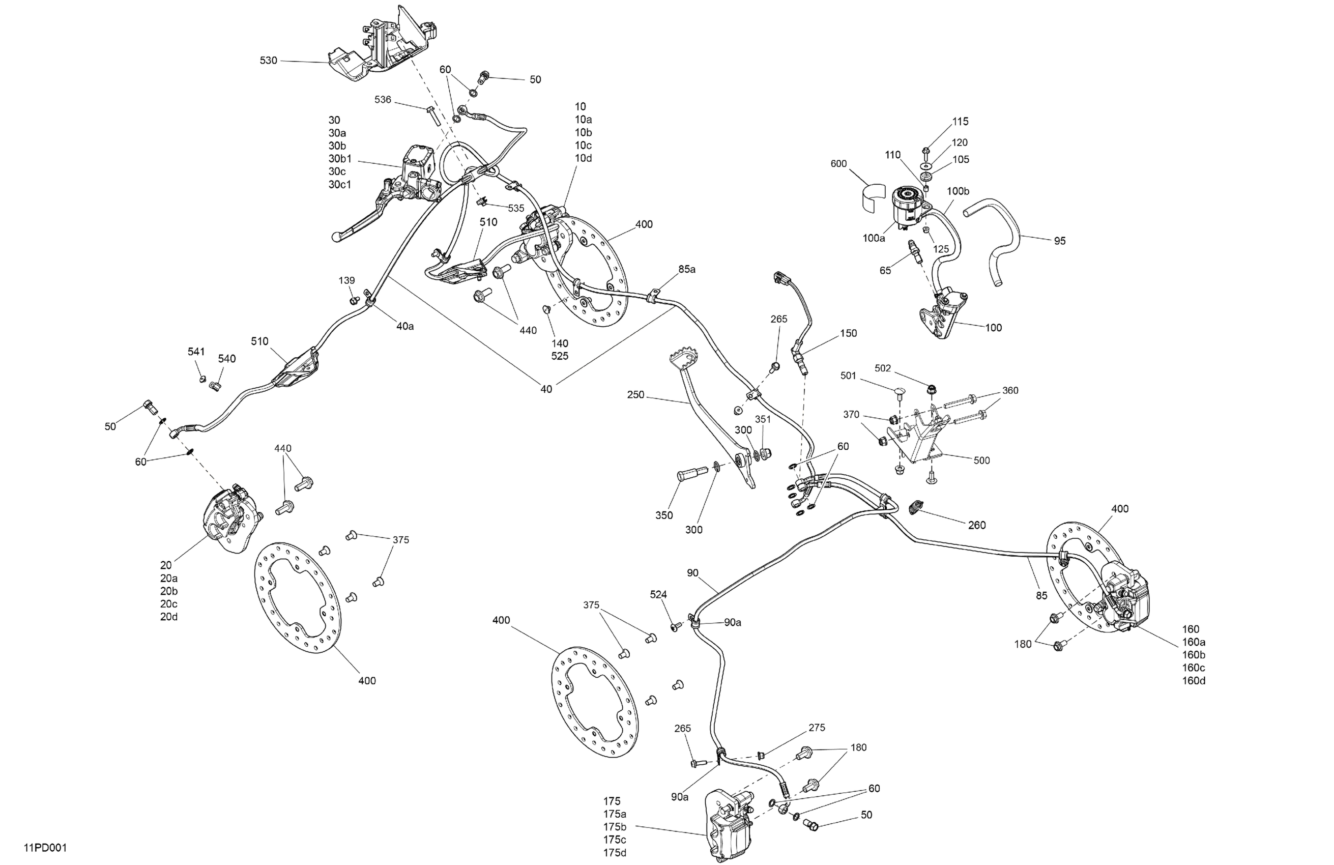 Can-Am Outlander 1000 EFI 6X6 - 4HRA - XU+ Package - Boreal Green, 2024 Mechanic - Brake System Diagram